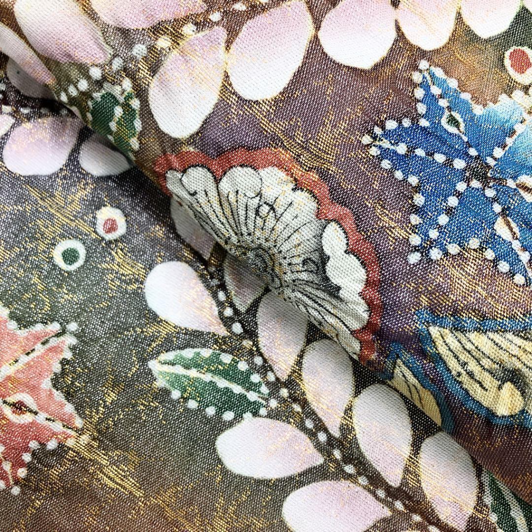 袋帯 速野静鳳 辻が花 銀通し 金の格子模様 金糸 栗梅色 O-2214 着物 きもの kimono 和服 和装 中古 リサイクル着物 【送料無料】