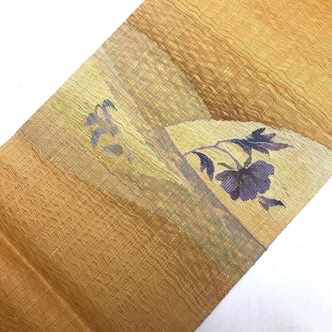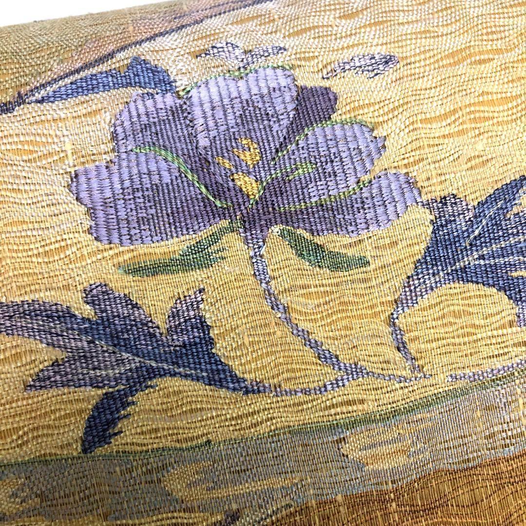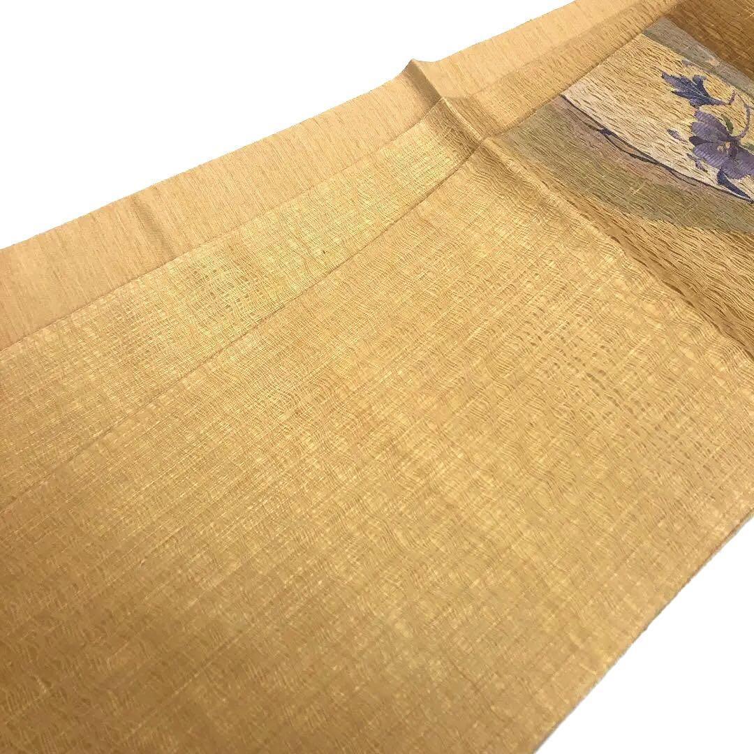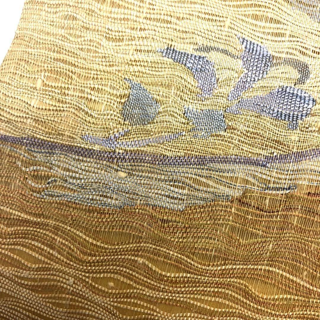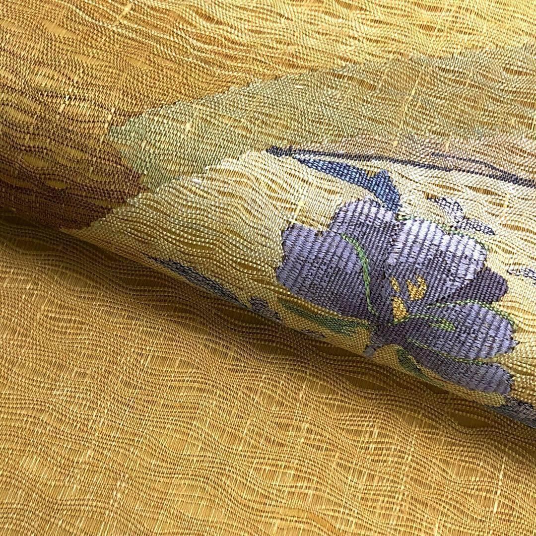 麦藁色のお色味のすくい織、草花模様がデザインされた素敵なお品でございます。