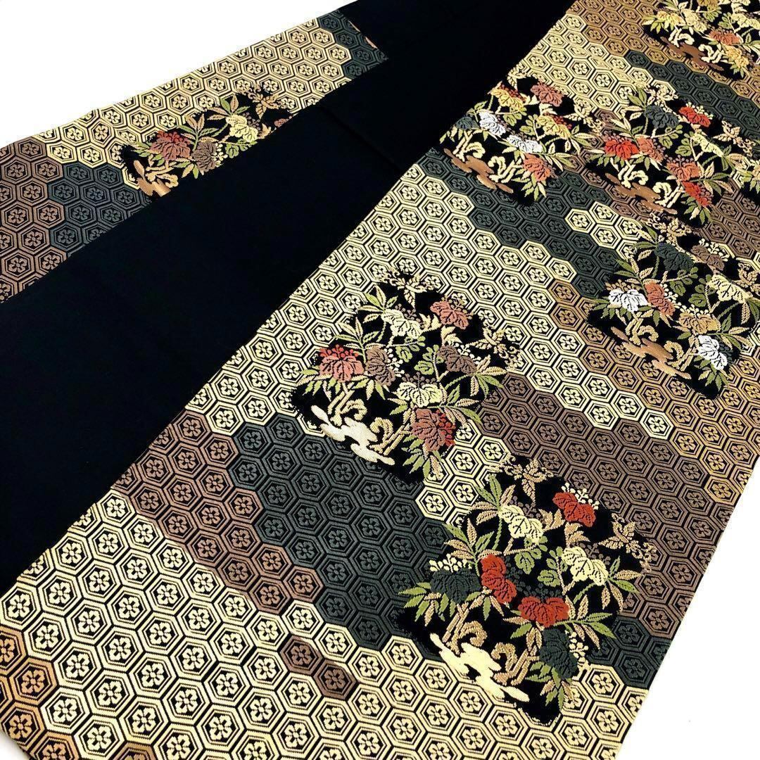 黒地に桐の花、花亀甲がデザインされた品のある素敵なお品でございます。