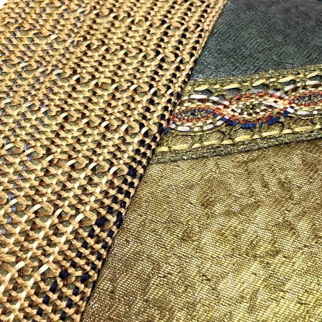 両端は組み織で異なる織模様に上品な色彩の膨れ織の切嵌でデザインされた手のかかった素敵なお品でございます。