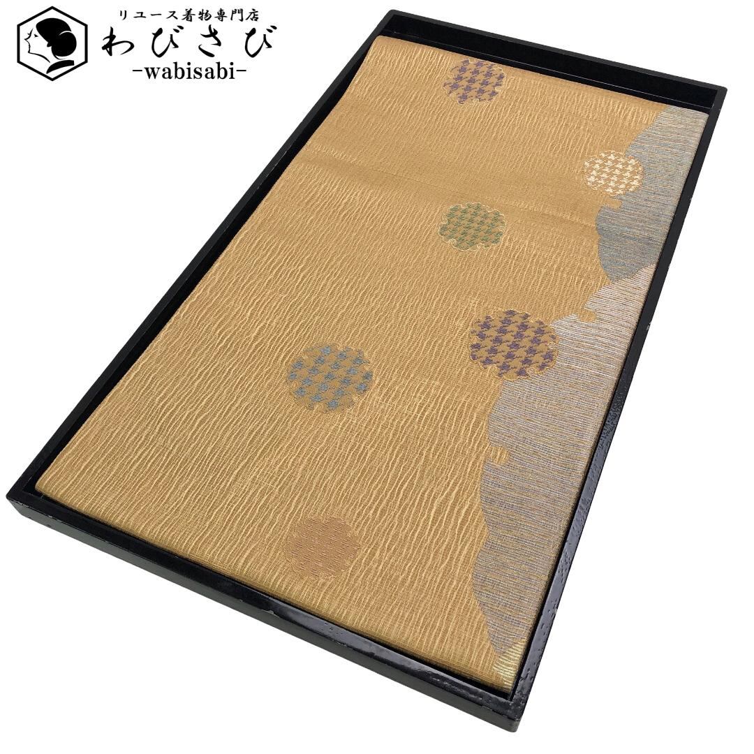 袋帯 雪輪紋に千鳥格子柄 ガード加工 深支子色 O-2417 着物 きもの kimono 和服 和装 中古 リサイクル着物 【送料無料】