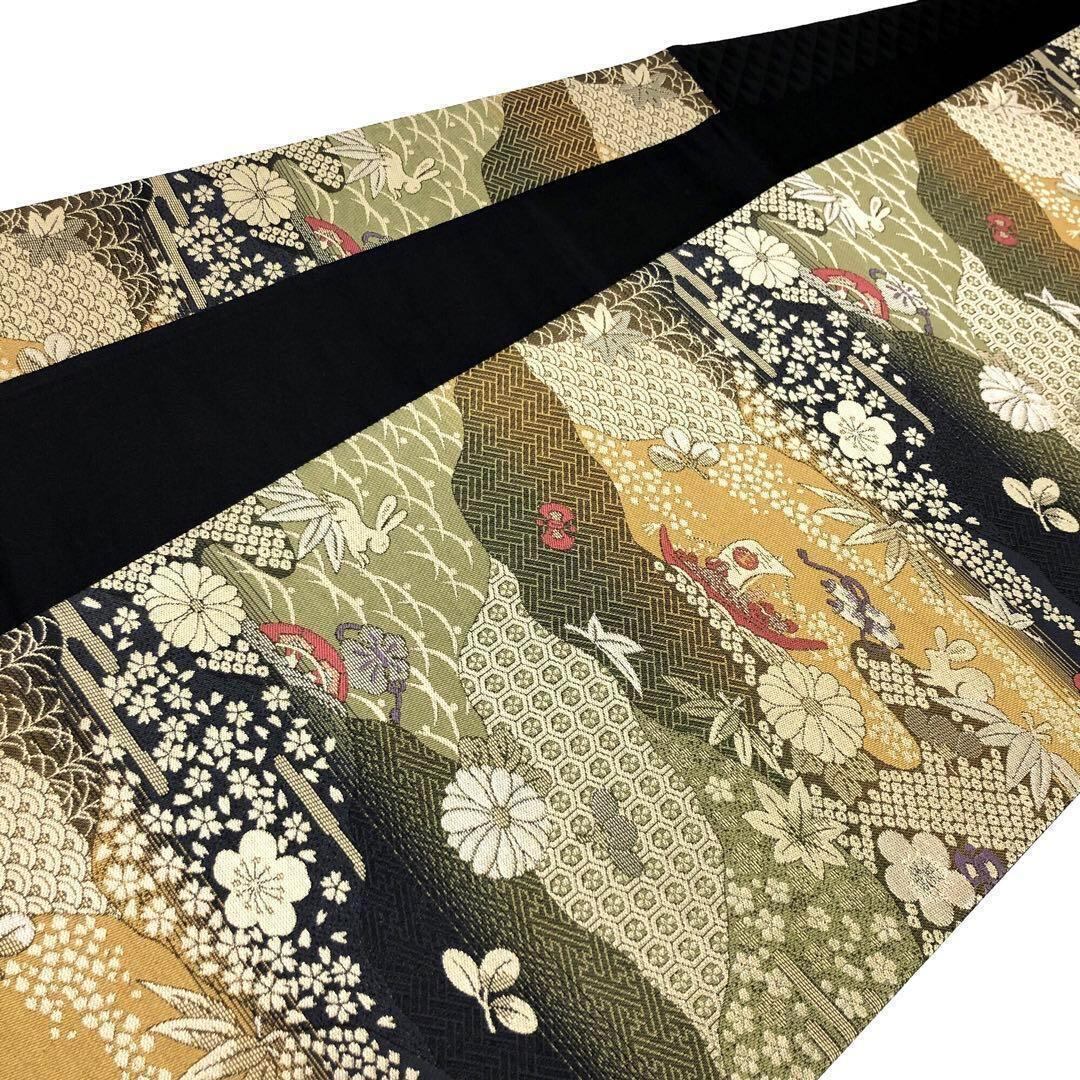 西陣織で菊や桜の花々、兎、宝船などがデザインされた素敵なお品でございます。