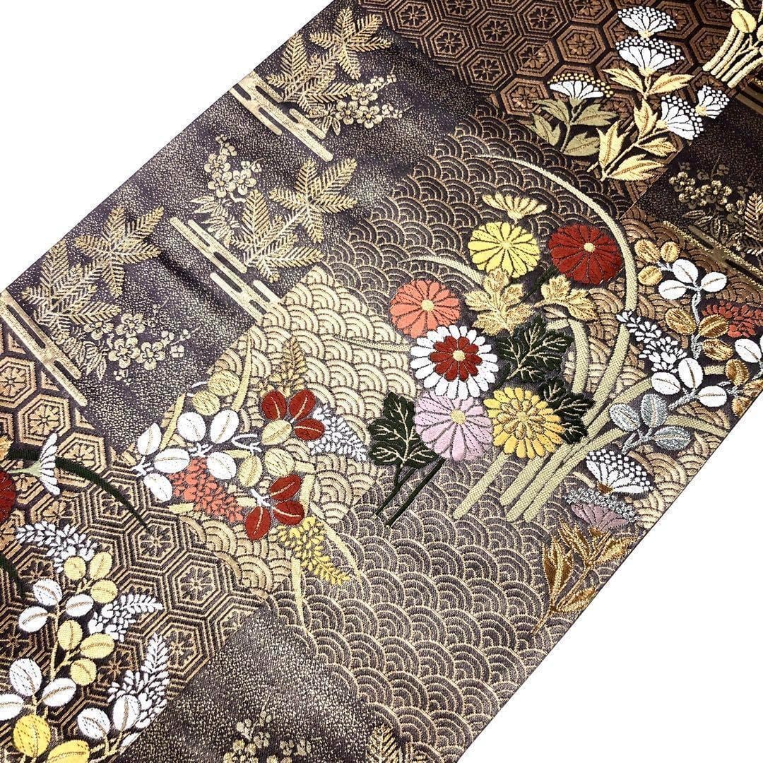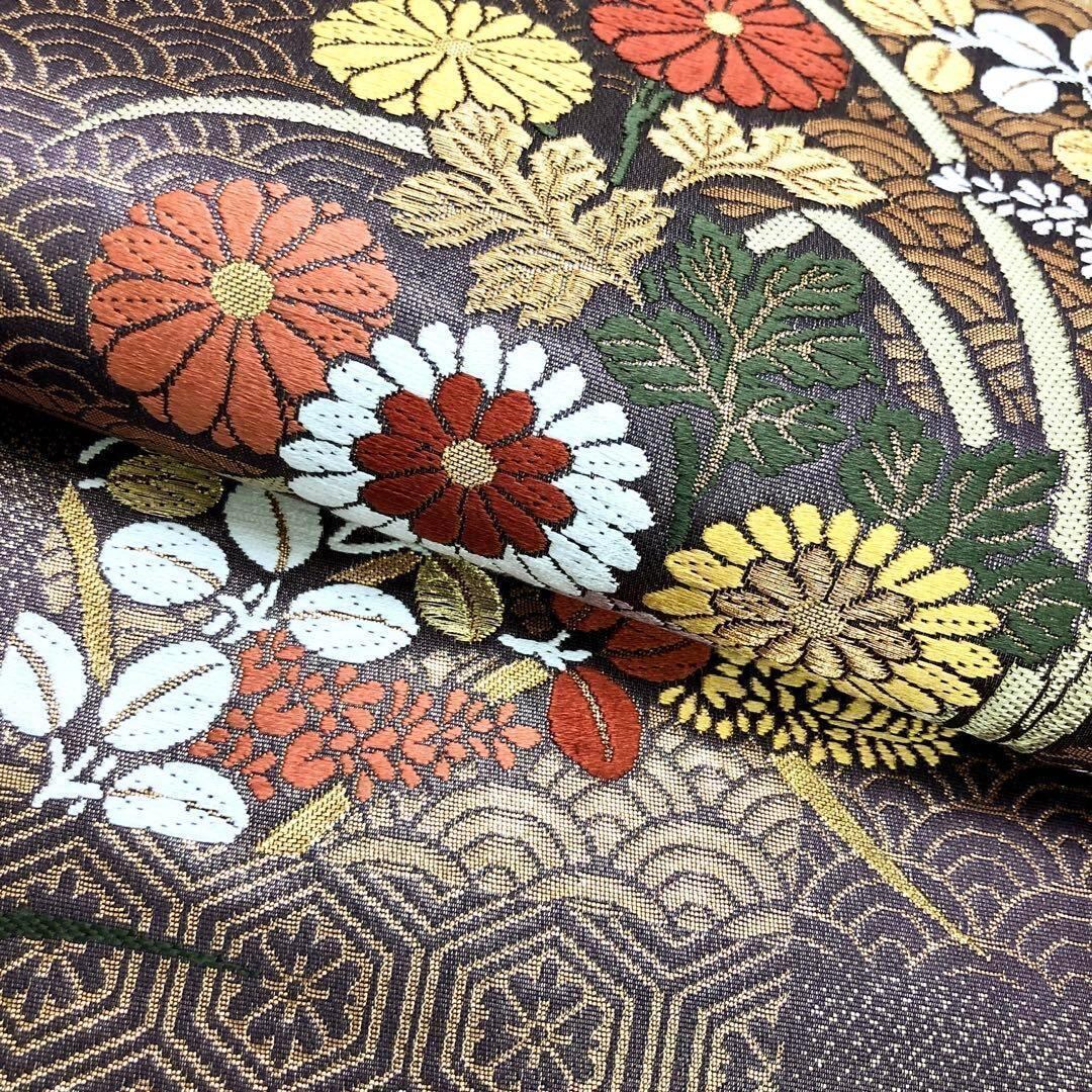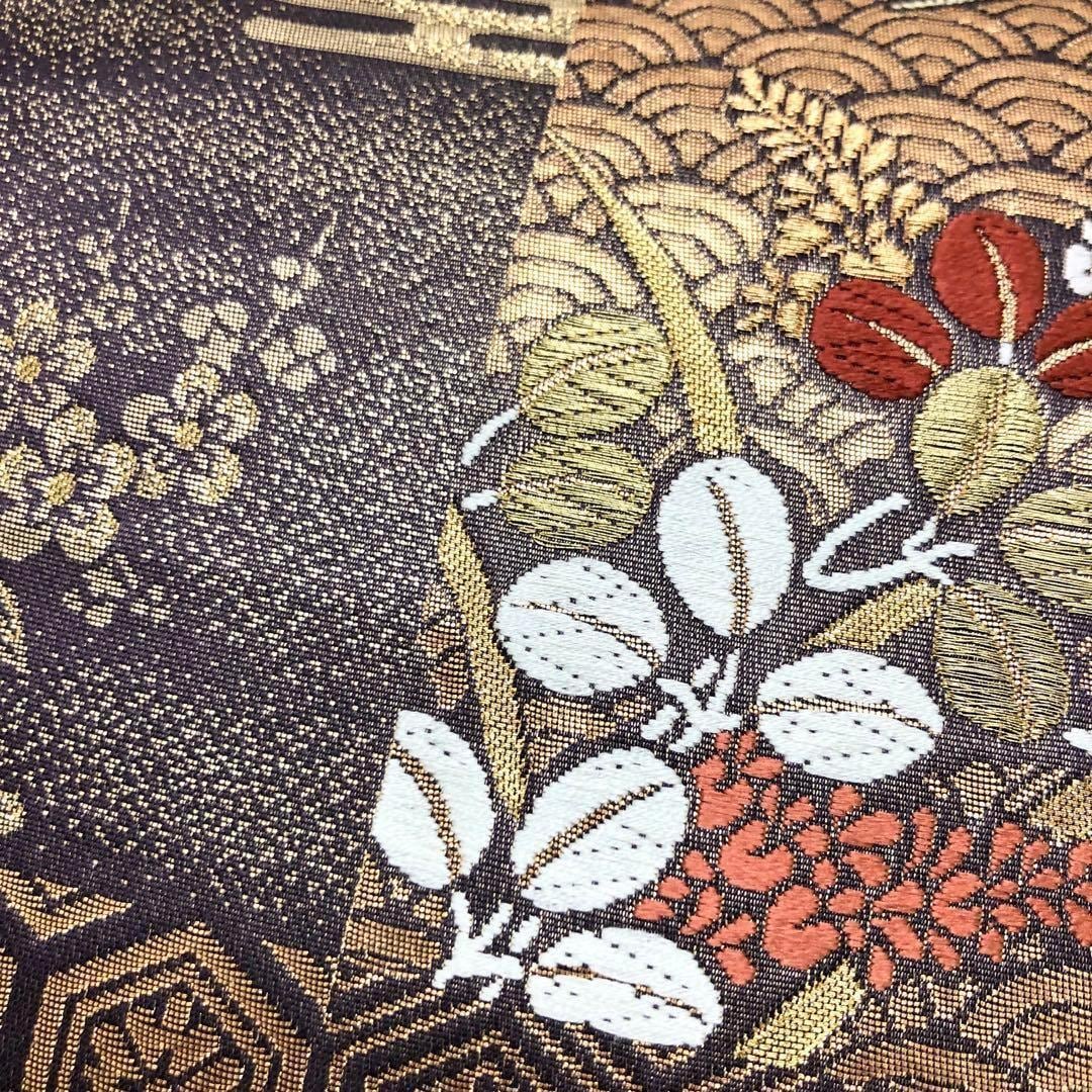 花草模様、花亀甲、青海波など唐織、金糸でデザインされた素敵なお品でございます。