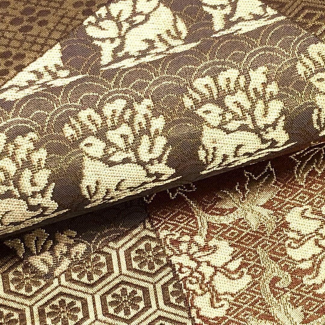 袋帯 花兎 鯉 花唐草 花亀甲 花菱 花七宝 金糸 紅消鼠色 O-2456 着物 きもの kimono 和服 和装 中古 リサイクル着物 【送料無料】