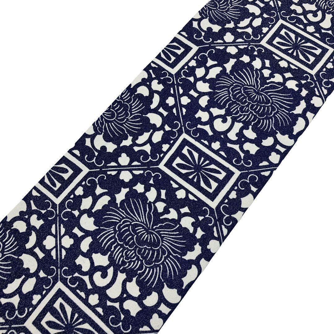 名古屋帯 型染 銀通し 花唐草模様 瑠璃色 O-2475 着物 きもの kimono 和服 和装 中古 リサイクル着物 【送料無料】