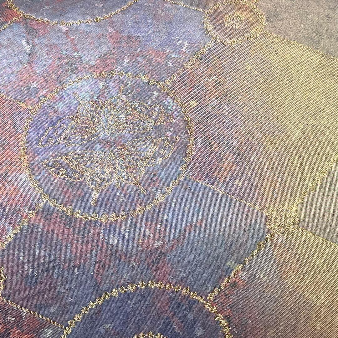 丸に蝶々、金糸を使った煌びやかな菱形模様がデザインされた素敵なお品でございます。