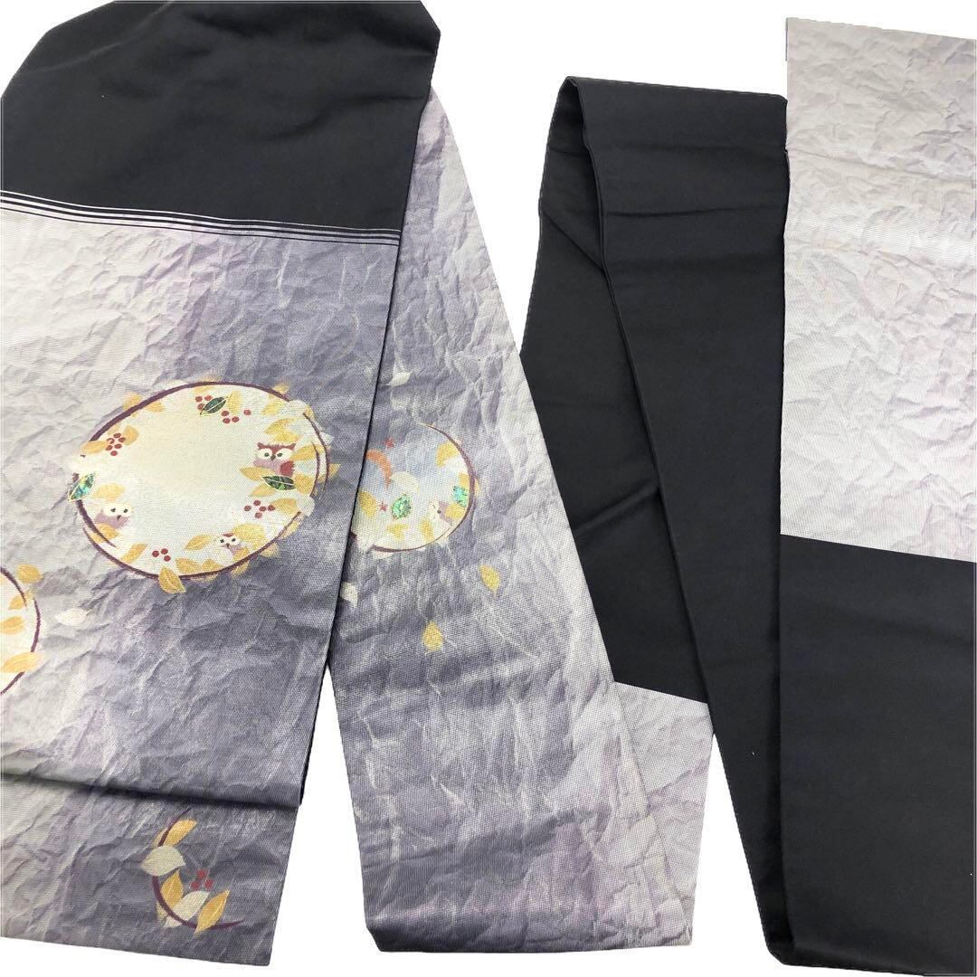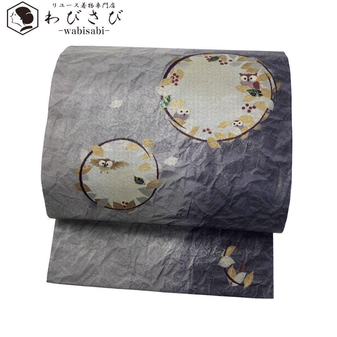 名古屋帯 かくれんぼ 螺鈿 丸い木の葉にミミズク O-2579