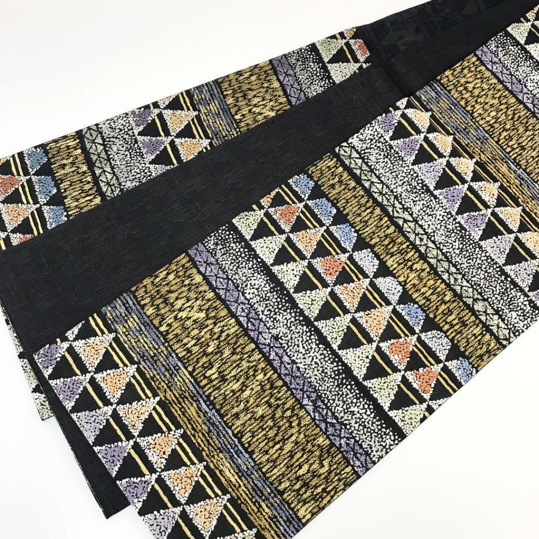 袋帯 羅天つづれ 美しい織模様 鱗柄 黒色 O-2593