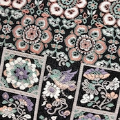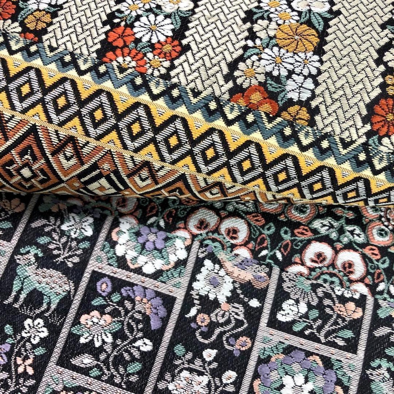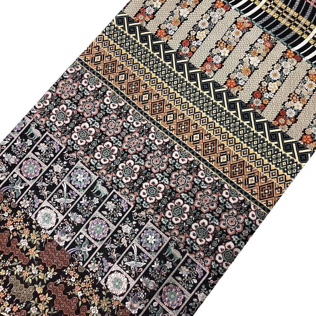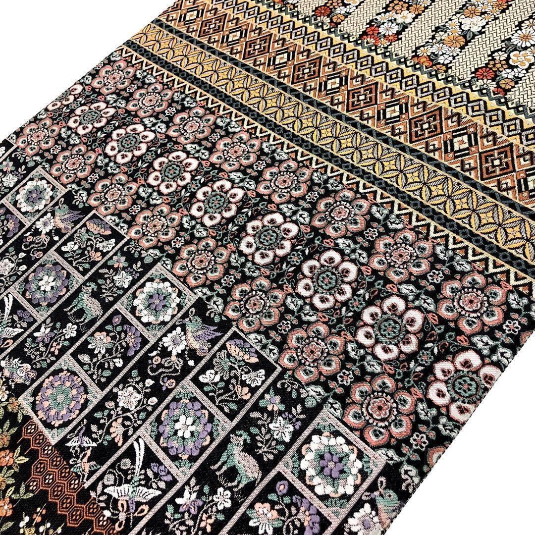 鳥や動物、花唐草模様、横柄紋様でデザインされた華やかで美しい柄裄の素敵なお品でございます。
