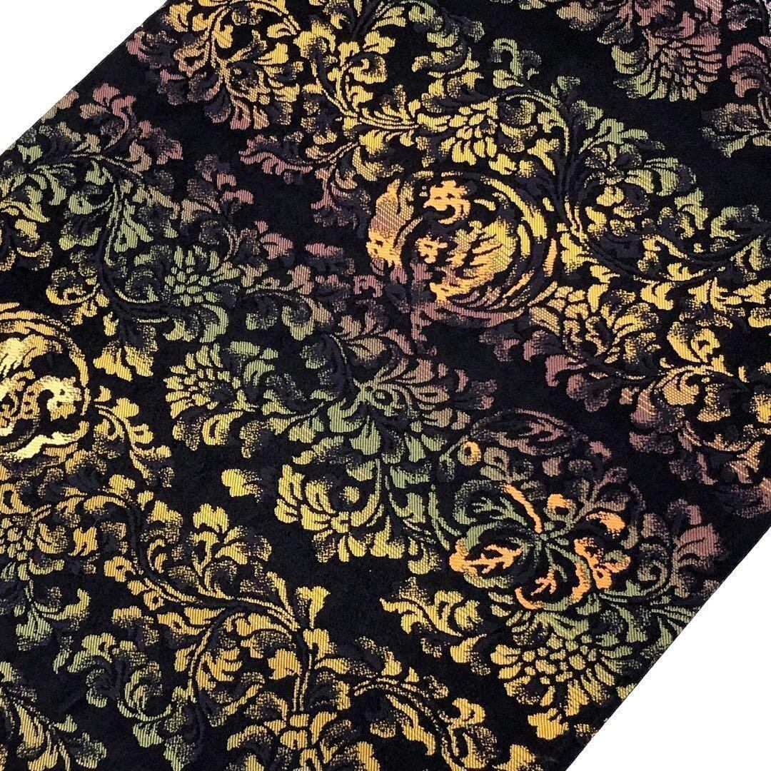 袋帯 オリエンタルな花唐草織模様 グラデーション 黒色 O-2608 着物 きもの kimono 和服 和装 中古 リサイクル着物 【送料無料】