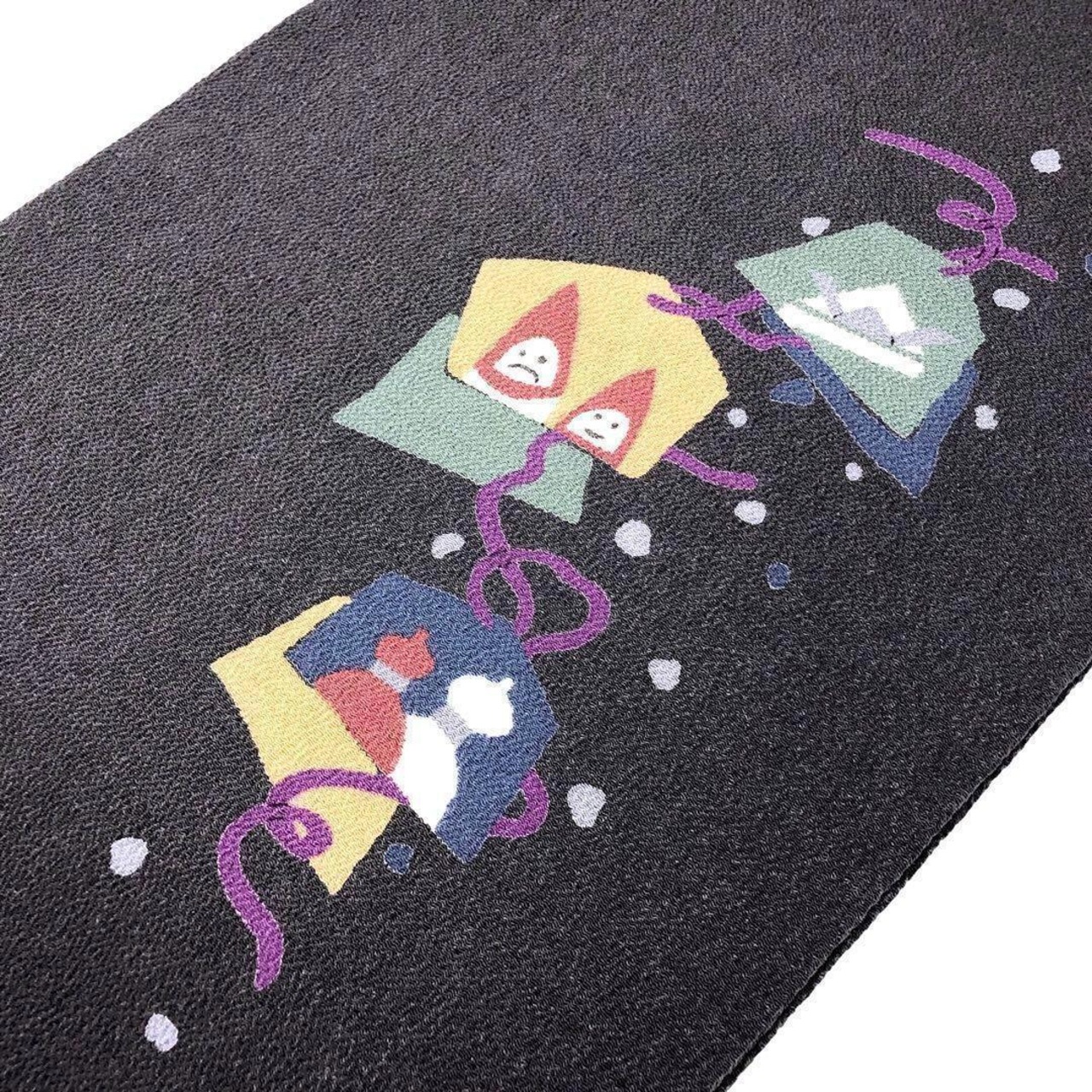 濃紫色の手触りの良い縮緬、絵馬の中に瓢箪や兜など可愛い柄裄がデザインされた素敵なお品でございます。