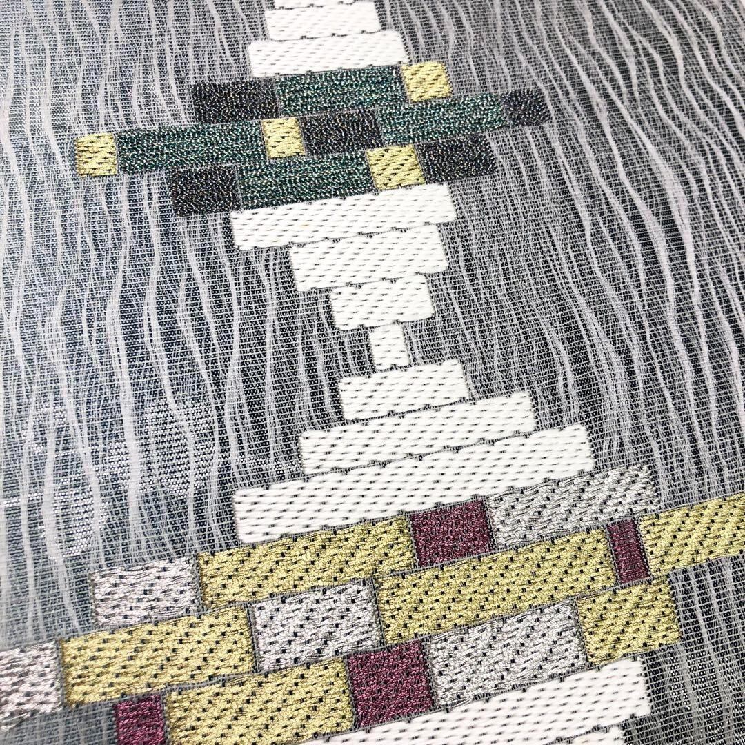 幻想と題された美しいグラデーションに幾何学模様が茅織でデザインされた素敵なお品でございます。