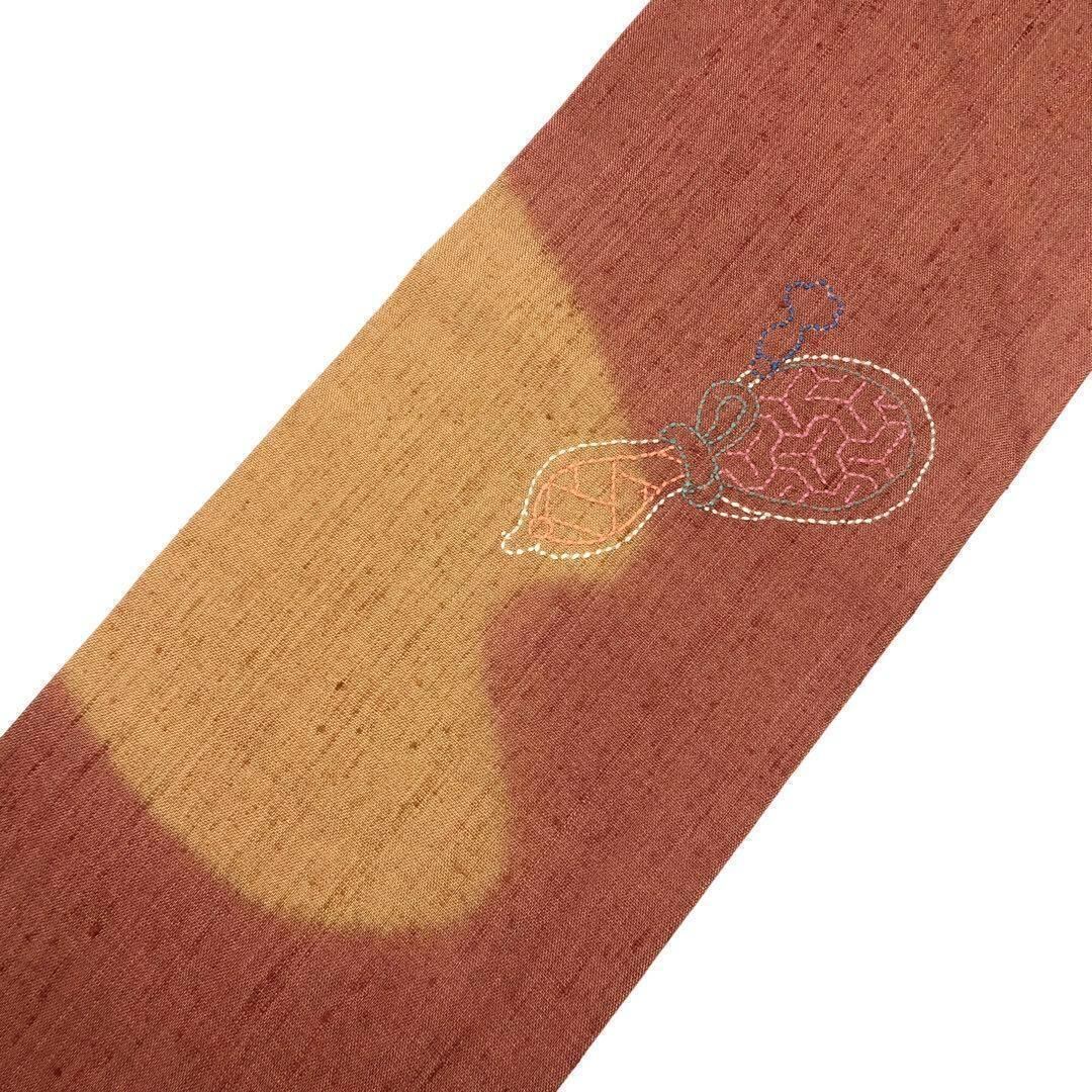 名古屋帯 刺し子 瓢箪 青海波 七宝 紬 赤茶色 O-2651 着物 きもの kimono 和服 和装 中古 リサイクル着物 【送料無料】