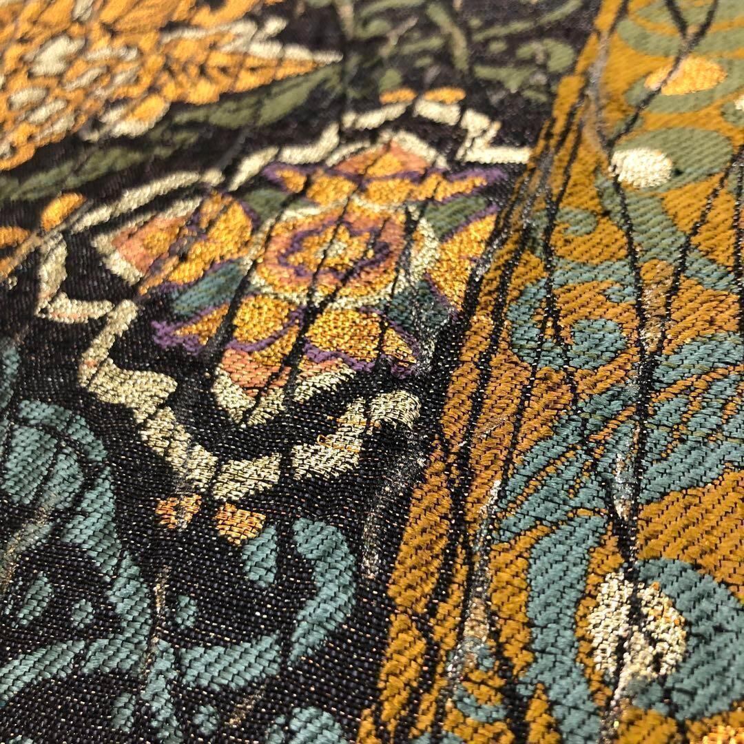 壱條纐纈の立体感のある美しい華模様、鱗柄に色彩豊かな横段模様の素敵なデザインのお品でございます。
