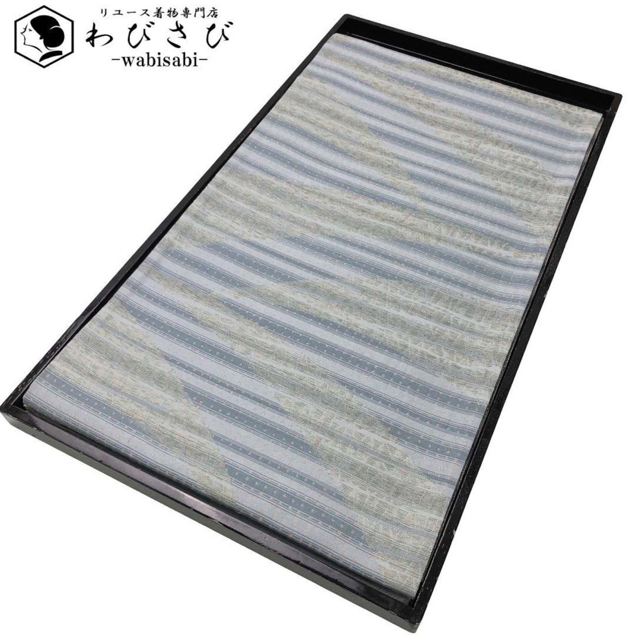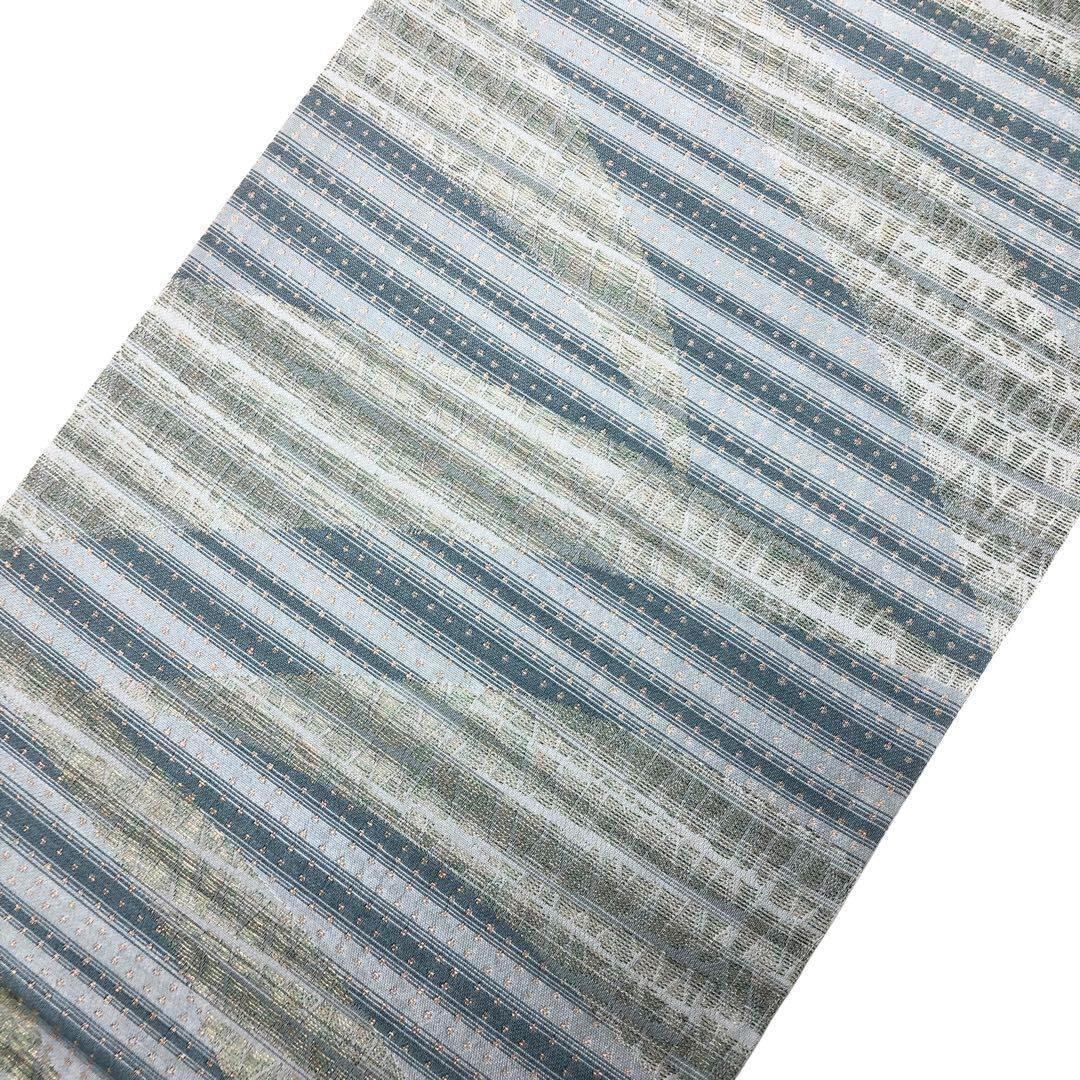 上品なお色味の抽象模様、反対は縦ラインに微かに浮かび上がる織模様のデザインが素敵なお品でございます。