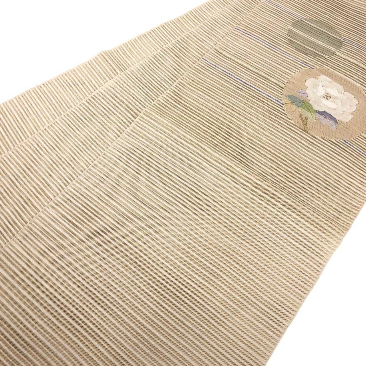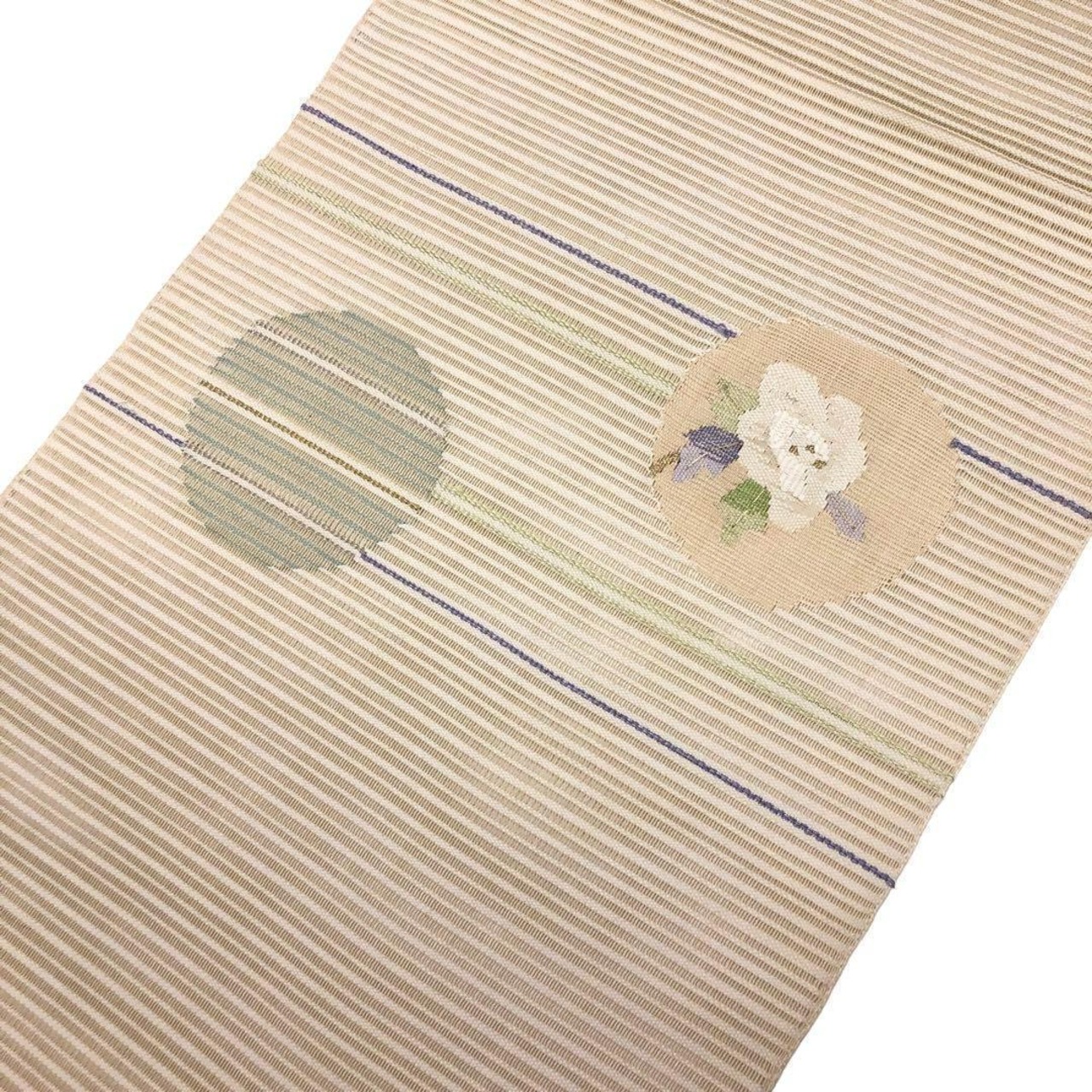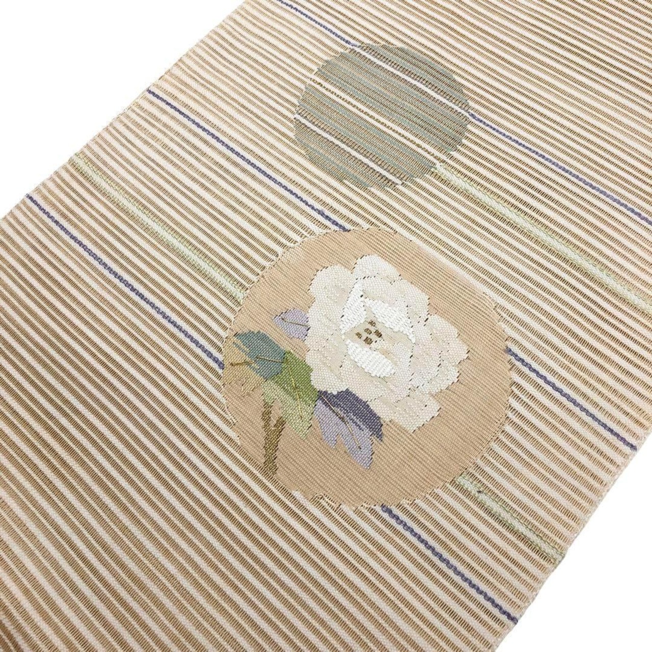 夏帯 名古屋帯 絽綴れ 丸に牡丹の花 生成色 O-2691