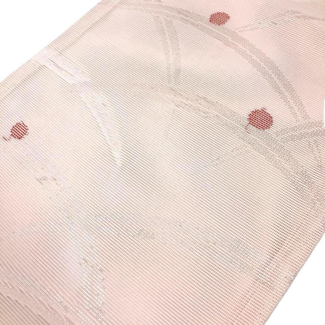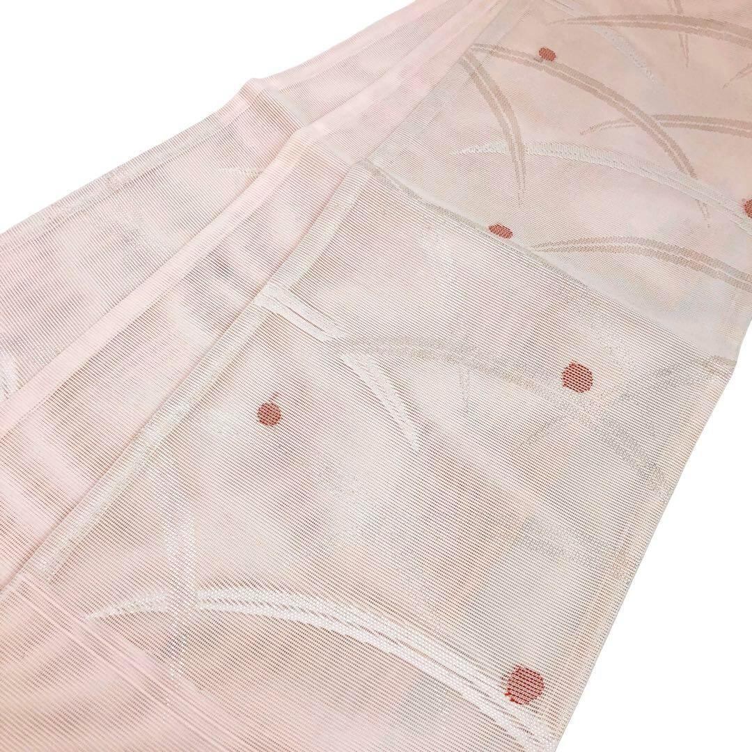夏帯 京袋帯 絽 露芝模様 桜色 銀糸 O-2694 着物 きもの kimono 和服 和装 中古 リサイクル着物 【送料無料】