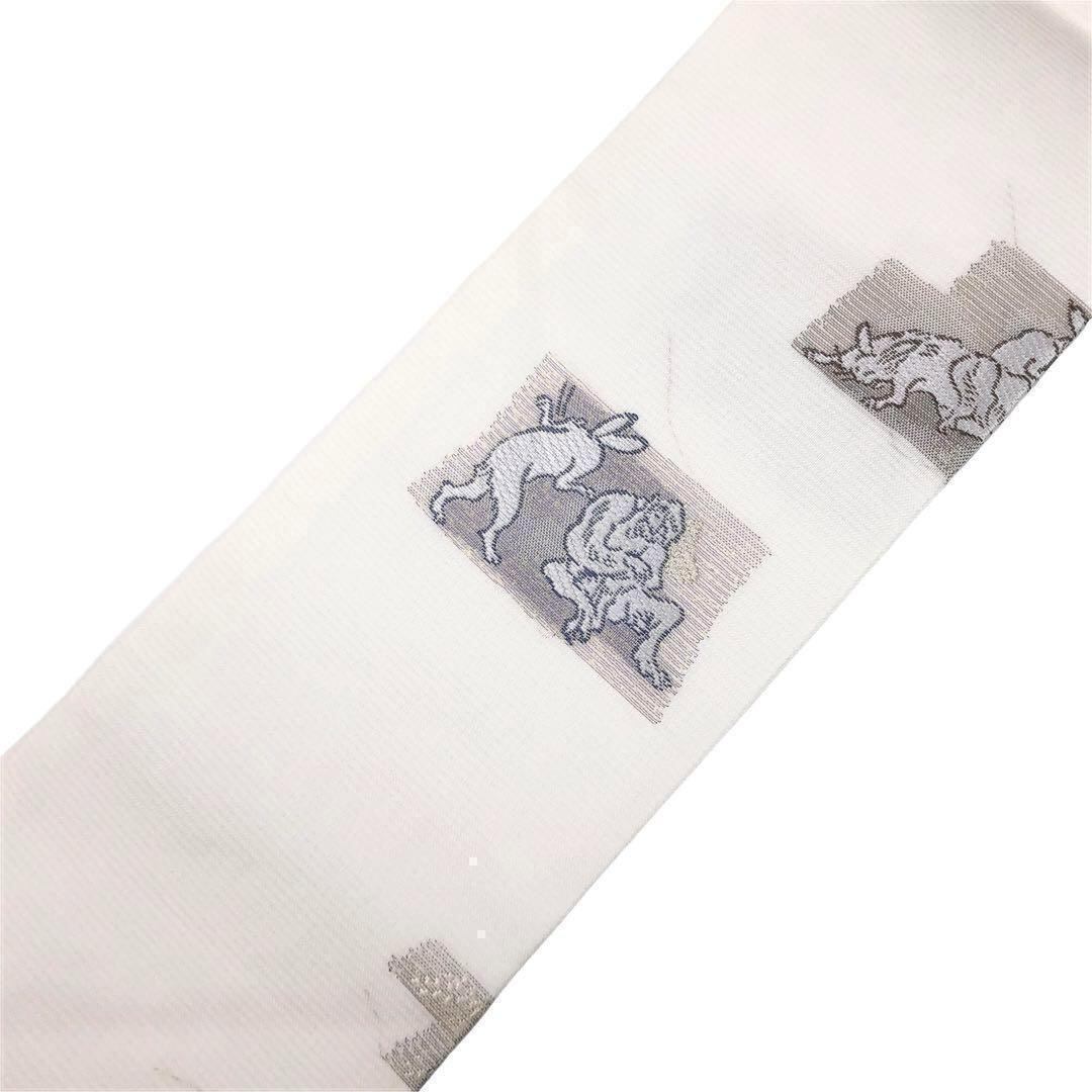 夏帯 名古屋帯 絽 西陣 沢本織物 鳥獣戯画 証紙付 乳白色 O-2722 着物 きもの kimono 和服 和装 中古 リサイクル着物 【送料無料】