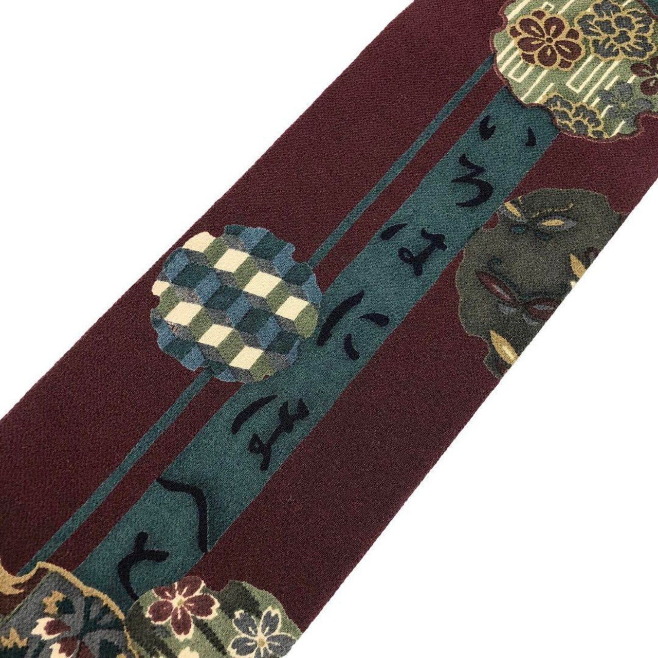 名古屋帯 雪輪に花と蝶 いろは歌 縮緬 紫檀色 O-2747