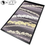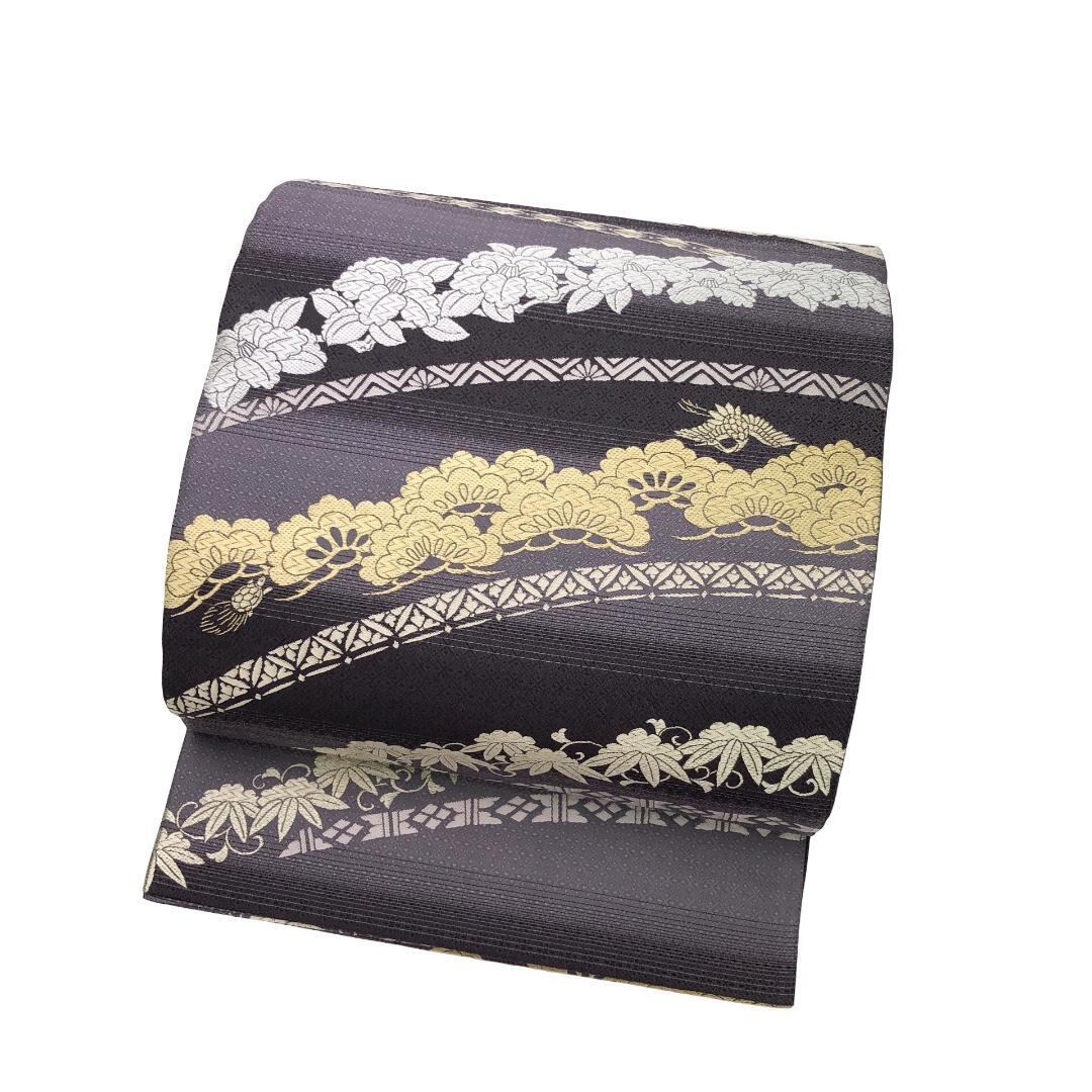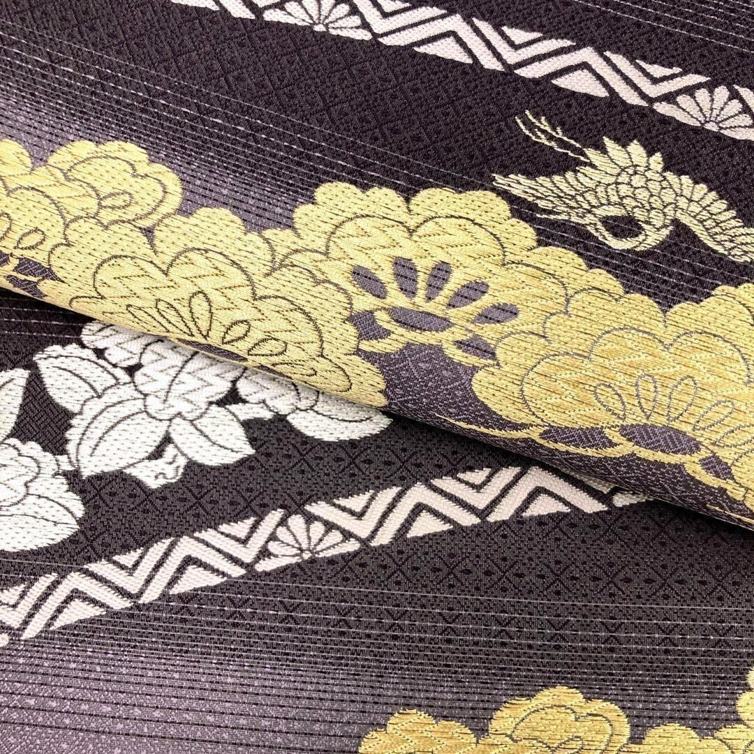 鶴亀、松、椿、笹などの品のある柄裄、反対は二色の細かな美しい横段織模様、3回の休眠と脱皮で繭を作る古代品種を復元した貴重な繭、三眠蚕を使った素敵なお品でございます。