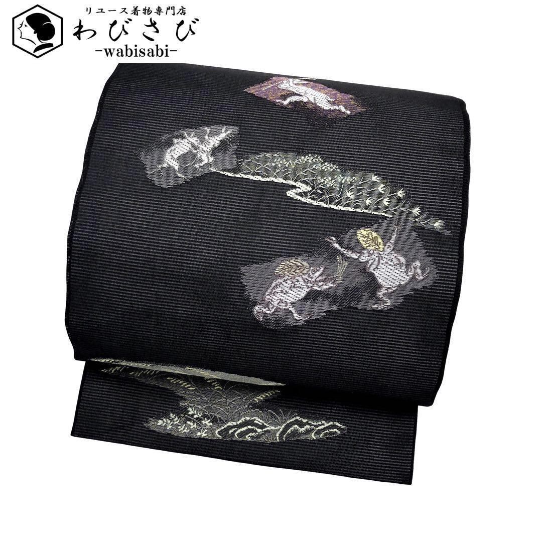 沢本織物、黒のお色に国宝の鳥獣戯画がデザインされた素敵なお品でございます。