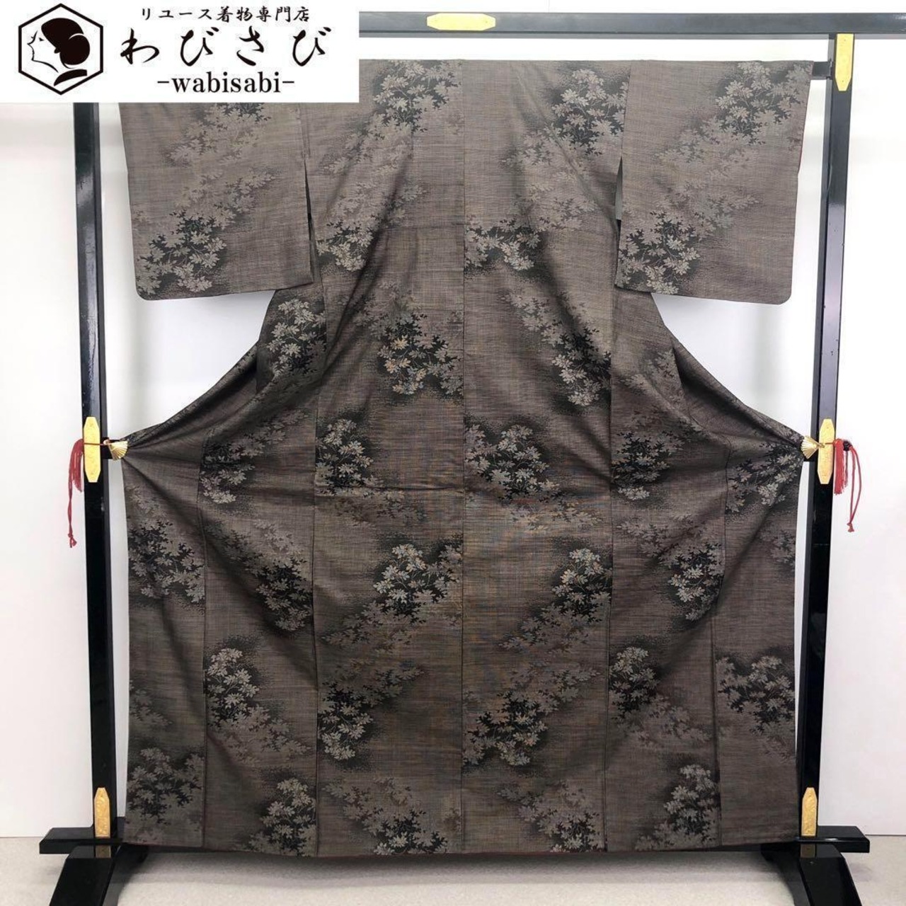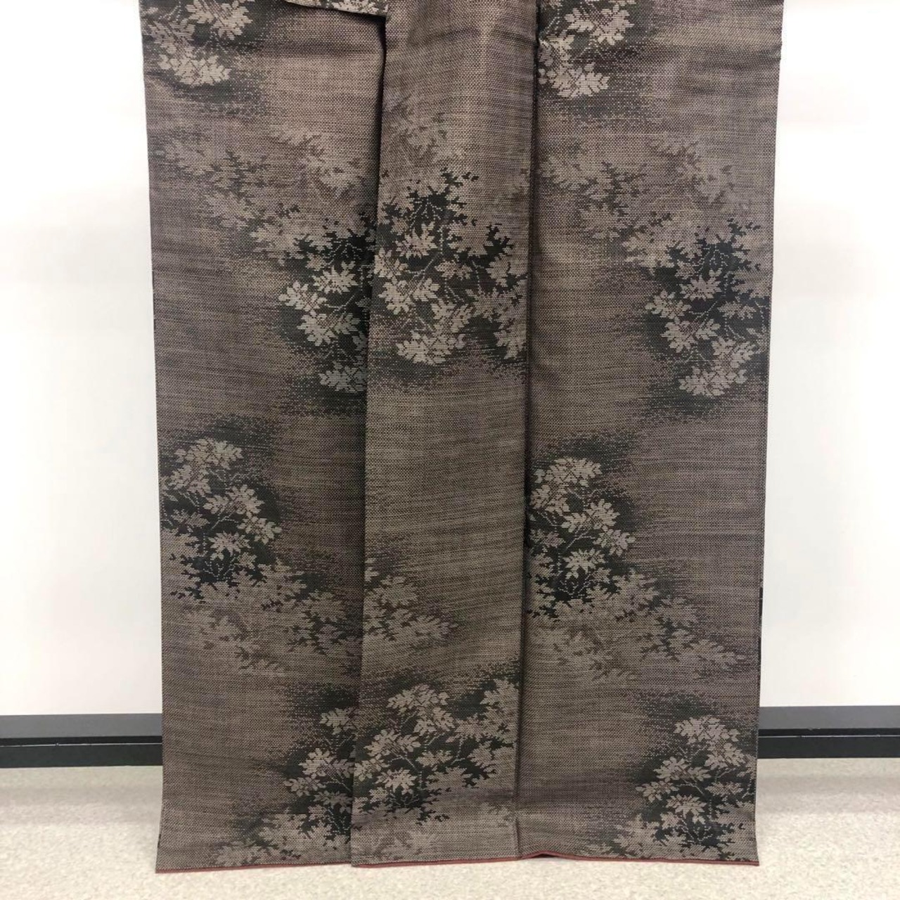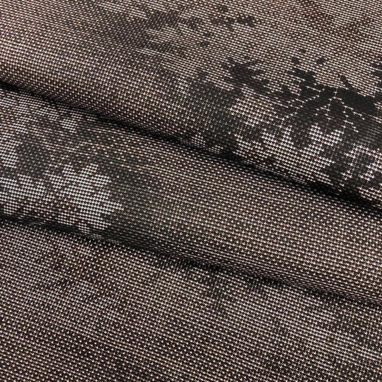 風合いの良い茶泥染、枝葉柄の織模様がデザインされた素敵なお品でございます。
