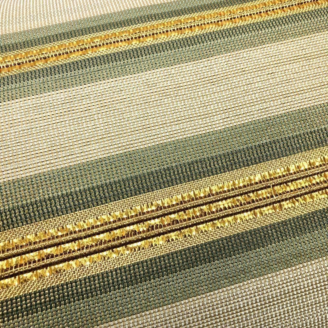 利休白茶色の上品なお色味にシンプルに煌びやかな横段模様がデザインされた品のある素敵なお品でございます。