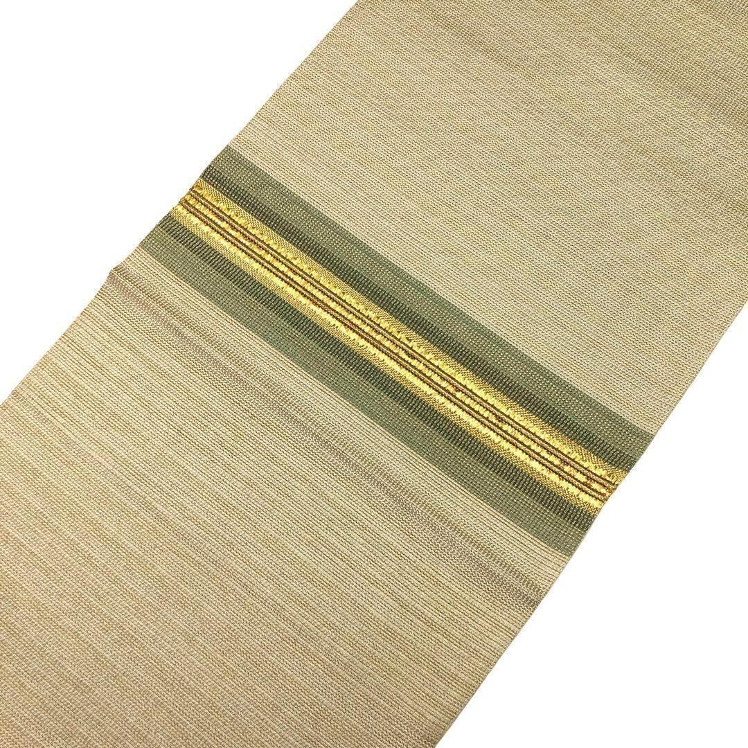 袋帯 煌びやかな横段模様 利休白茶色 O-2808 着物 きもの kimono 和服 和装 中古 リサイクル着物 【送料無料】