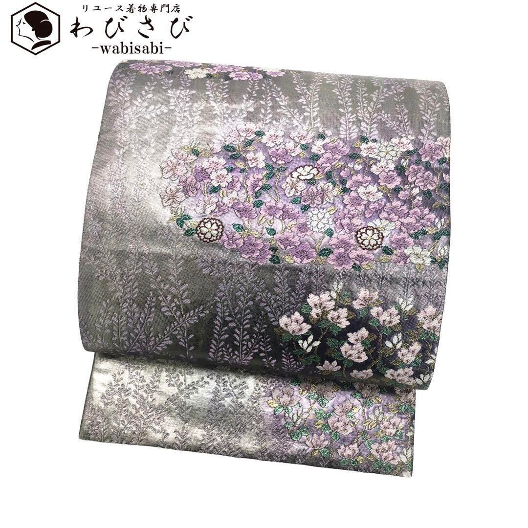 袋帯 鮮やかな紫色の小花模様 煌びやかな銀色 O-2812