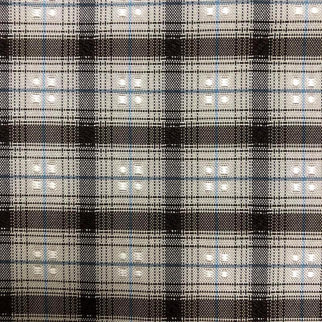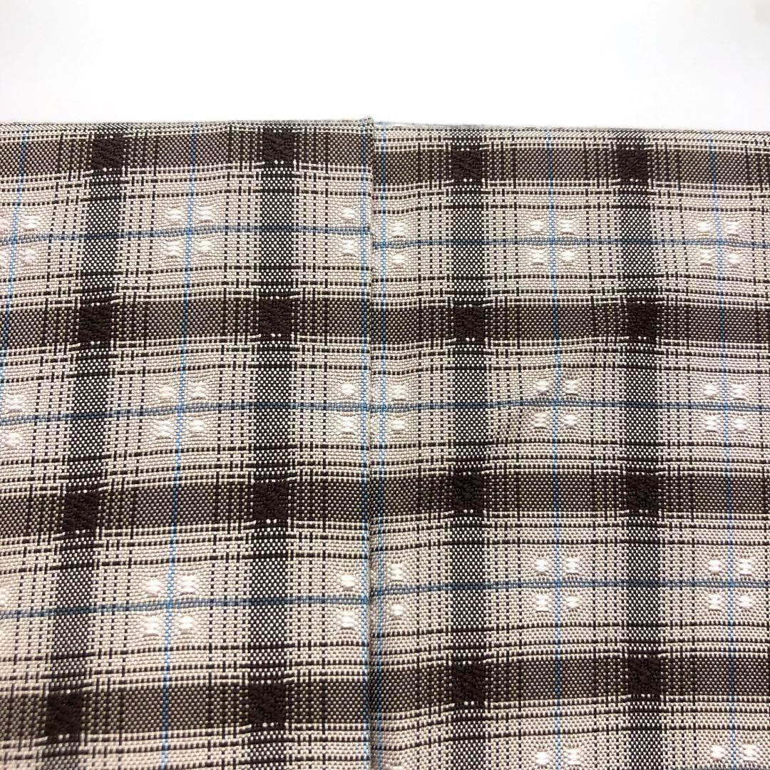蕎麦切色ベースの自然な風合いのお色味、格子模様に花織でデザインされた素敵なお品でございます。