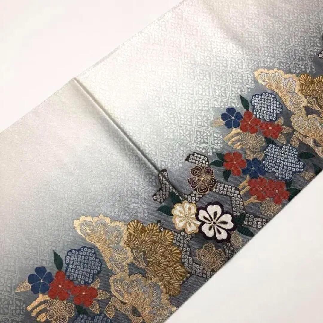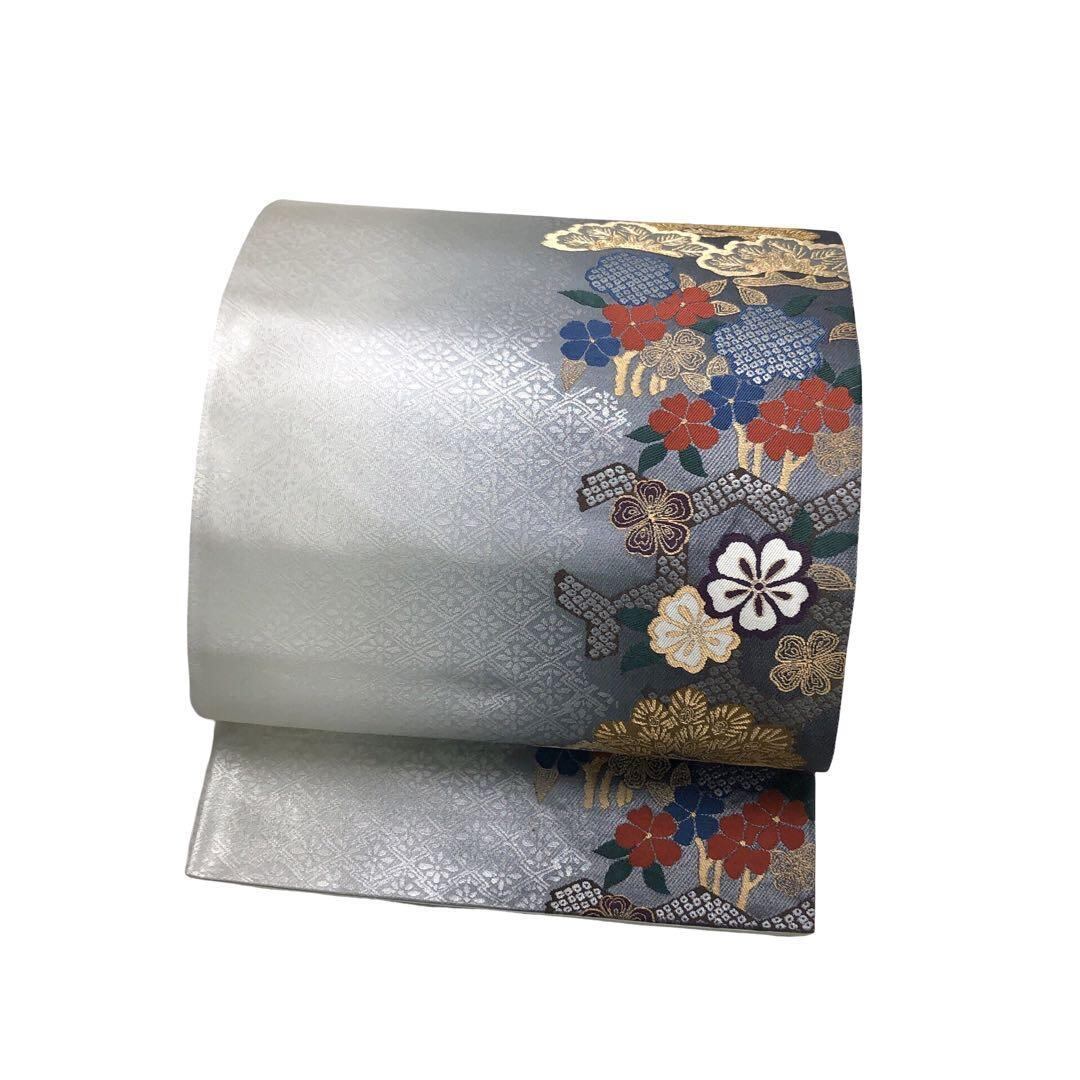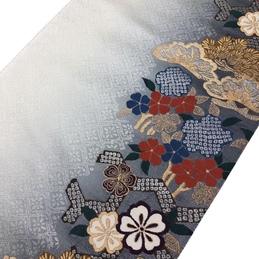 袋帯 聚楽 縦柄に桜の花 松 グラデーション 金糸 水銀色 O-1811 着物 きもの kimono 和服 和装 中古 リサイクル着物 【送料無料】