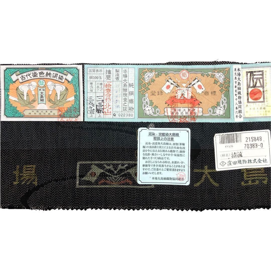 本場大島紬 茶泥染 流水模様 カタス7マルキ 証紙付 K-3144 着物 きもの kimono 和服 和装 中古 リサイクル着物 【送料無料】