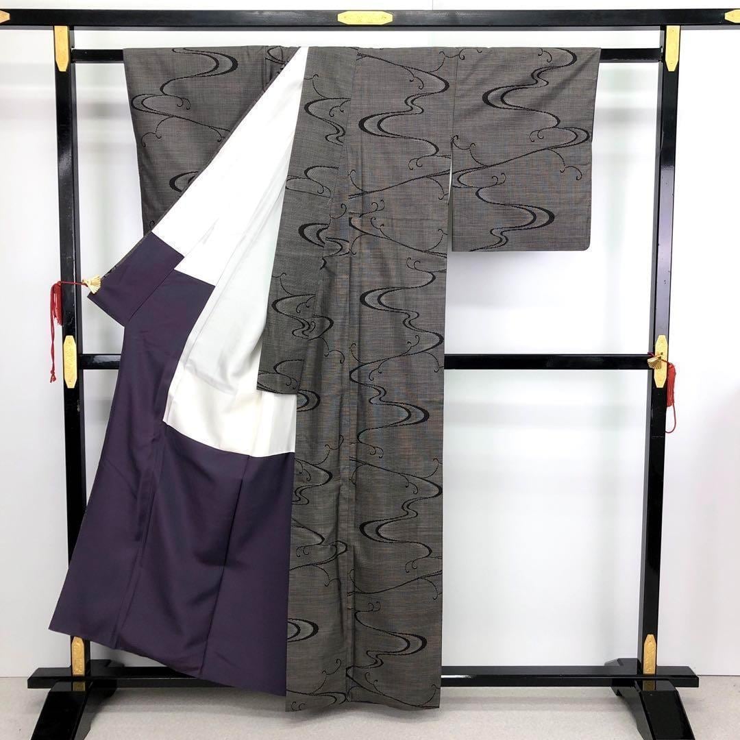 茶泥染の風合いの良い茶色に流水模様の織模様がデザインされた素敵なお品でございます。