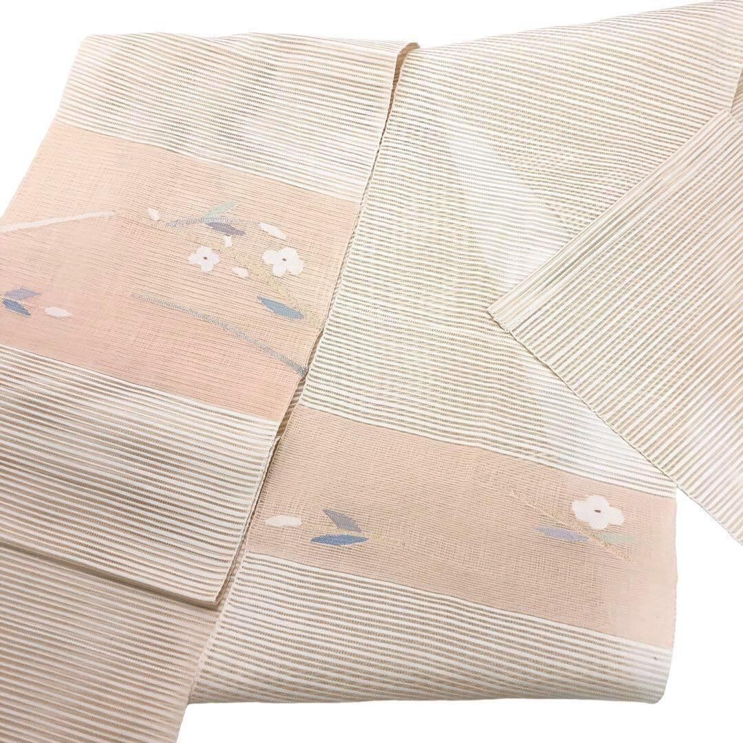 夏帯 名古屋帯 絽 花柄 薄生成色 O-2865 着物 きもの kimono 和服 和装 中古 リサイクル着物 【送料無料】