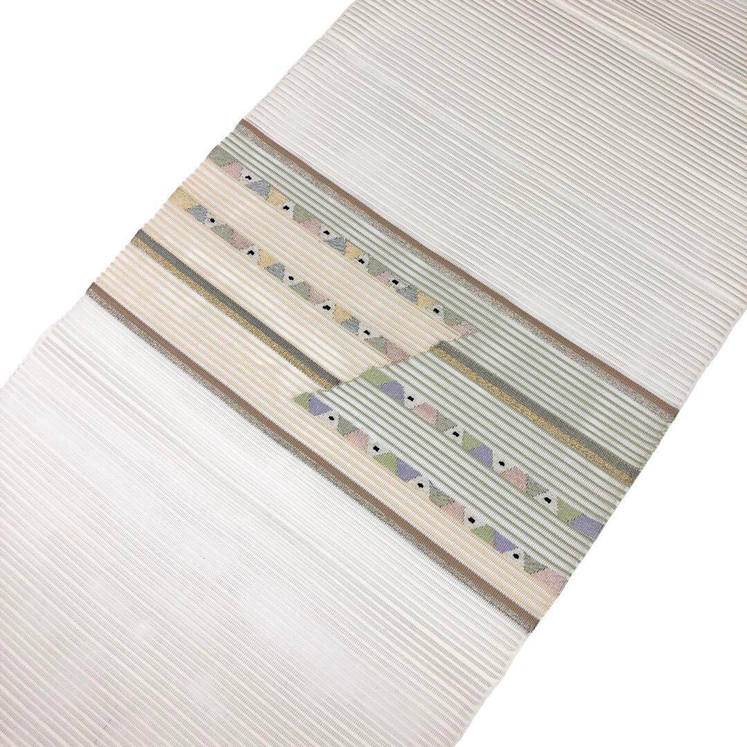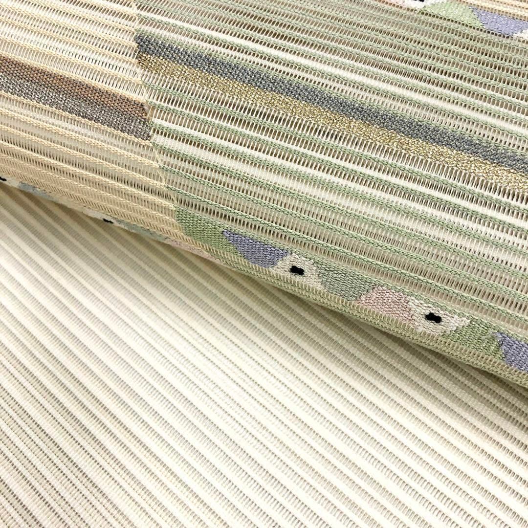 夏帯 名古屋帯 絽 横段幾何学模様 乳白色 O-2879