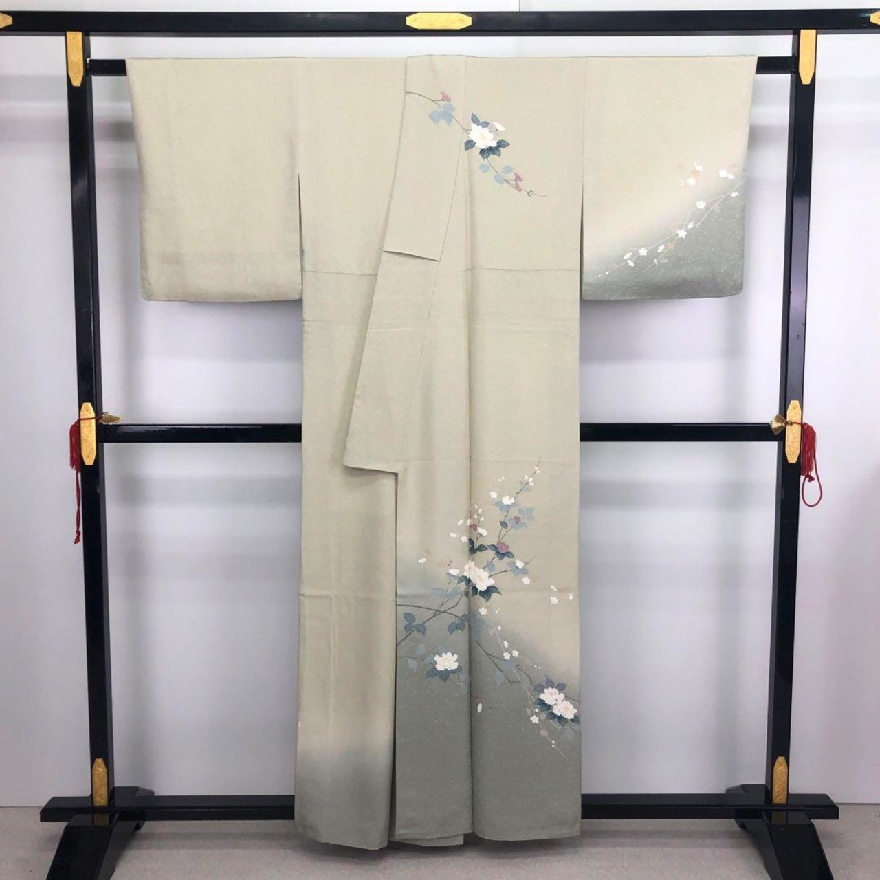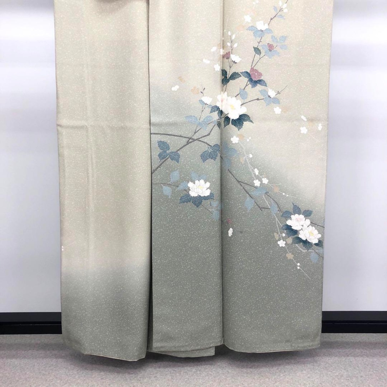 訪問着 友禅 上品な花柄模様 叩き染 薄柳色 暈し K-3161