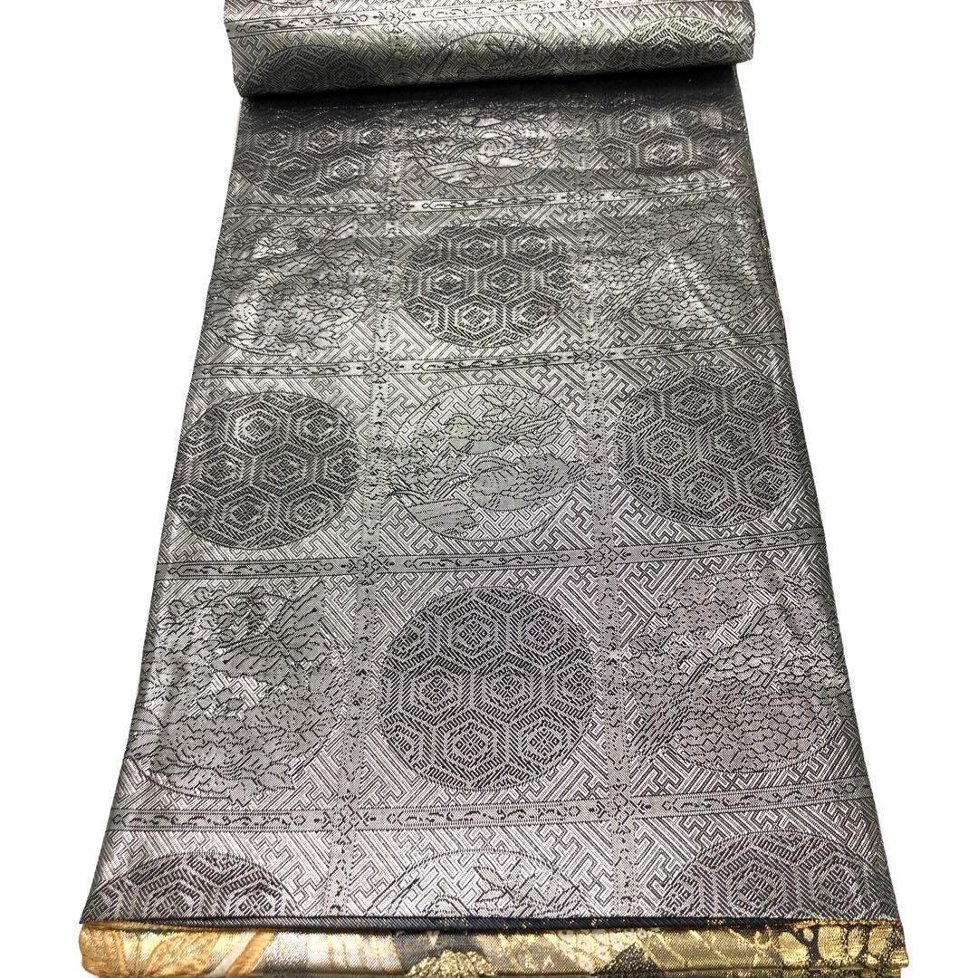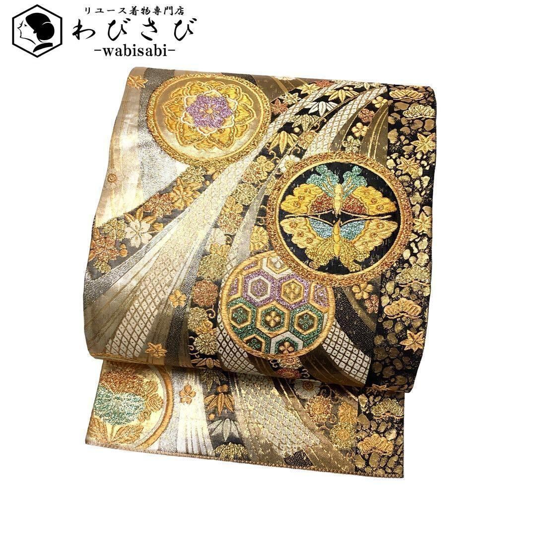 丸に向かい蝶柄、美しい華柄模様、金銀糸を使った華やかで煌びやかな印象の素敵なデザインのお品でございます。