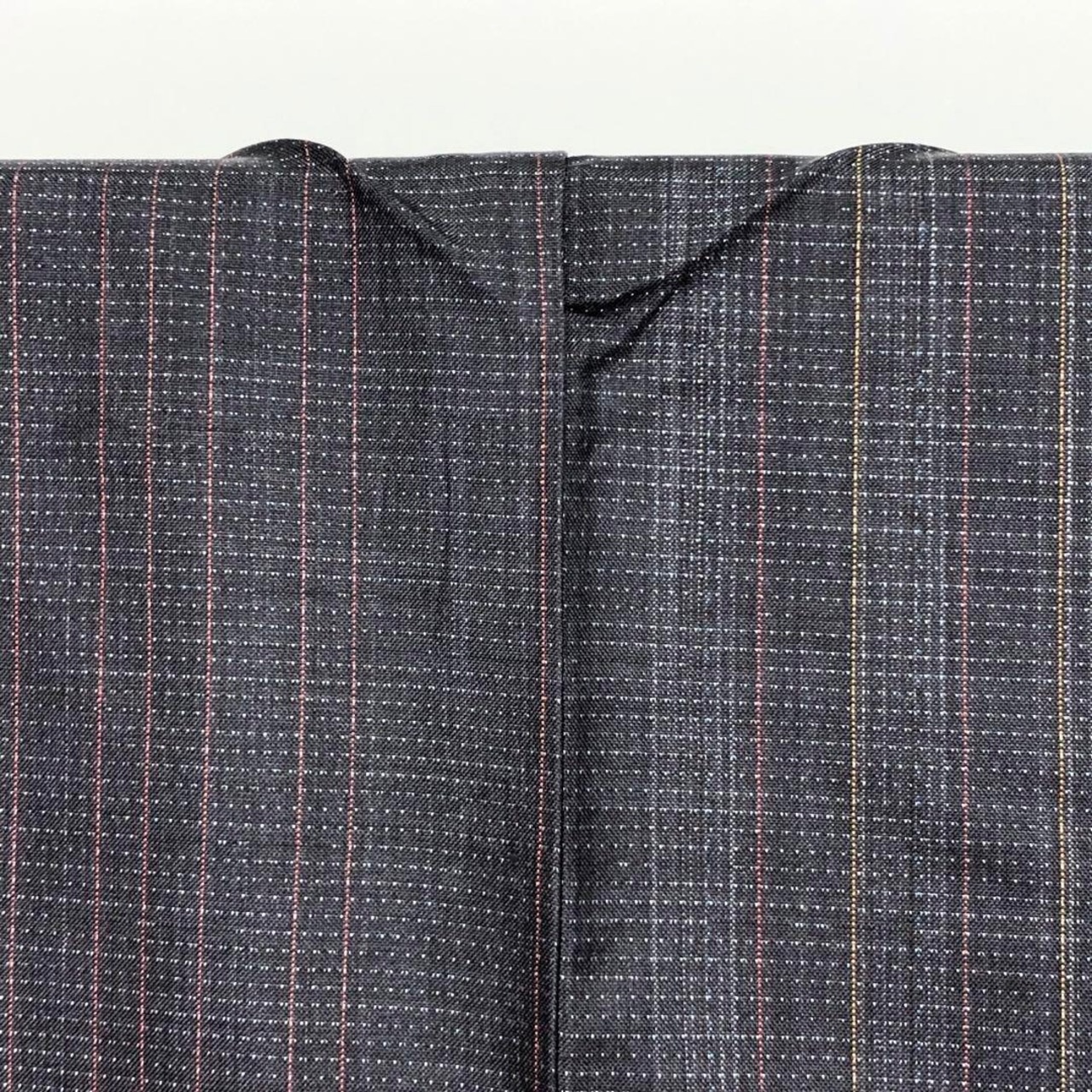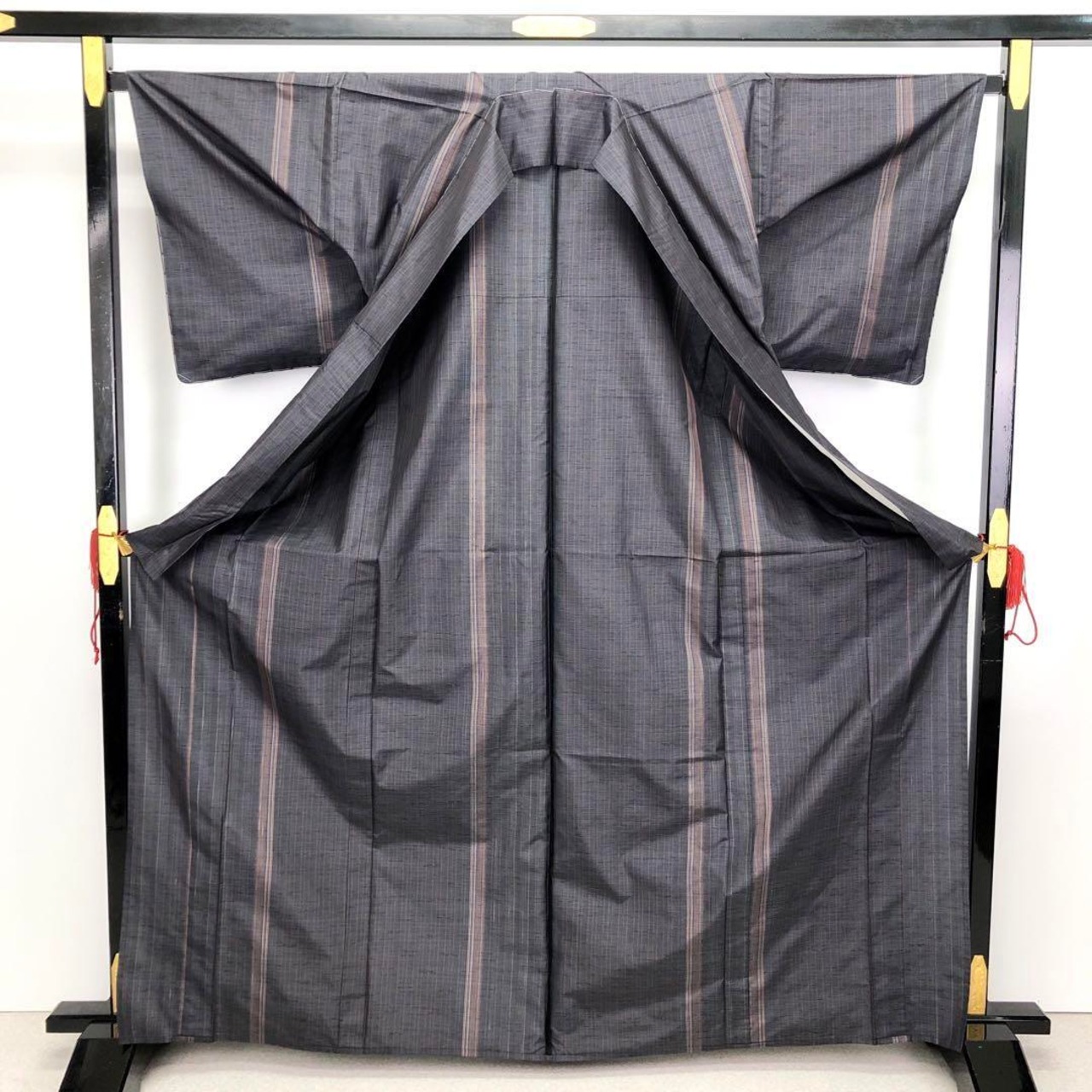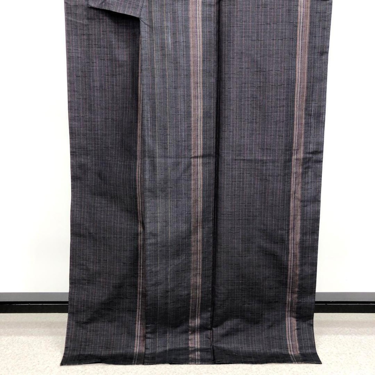 単衣 本場縞大島紬 モダンな縦縞模様 証紙付 石板色 トールサイズ K-3189