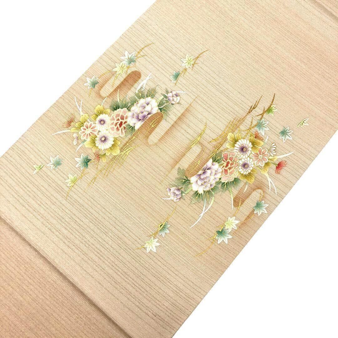 袋帯 作家物 美しい花々 金彩 金通し 生成色 ガード加工 O-2917 着物 きもの kimono 和服 和装 中古 リサイクル着物 【送料無料】