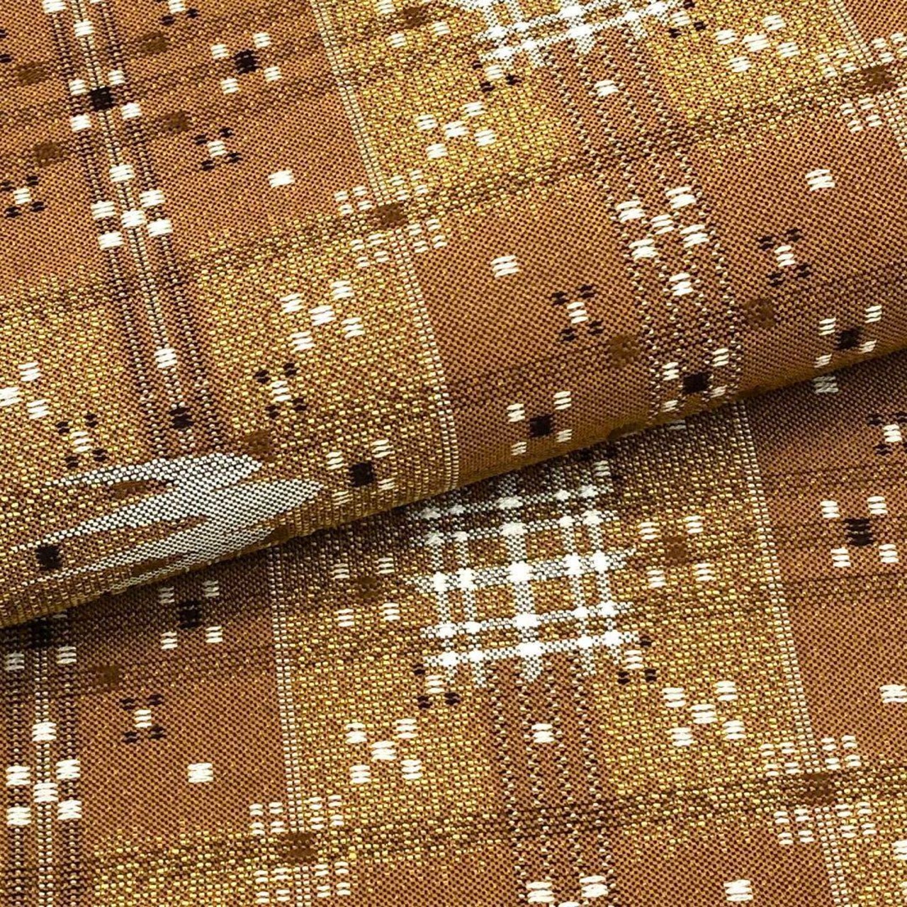 袋帯 西陣織 燕柄 格子模様 花織 証紙付 土色 O-2944