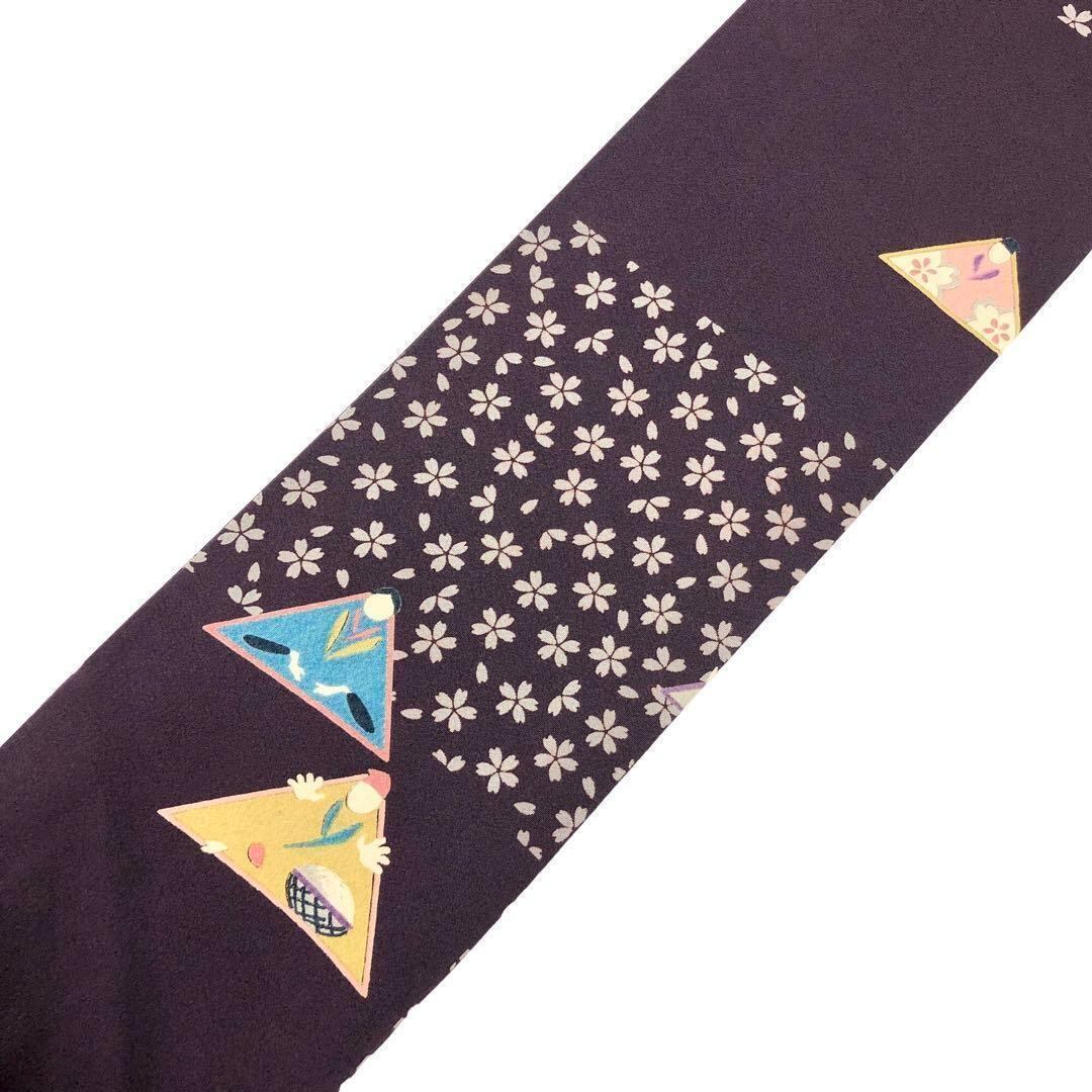 紫色の縮緬に花咲か爺さん、花模様がデザインされた素敵なお品でございます。