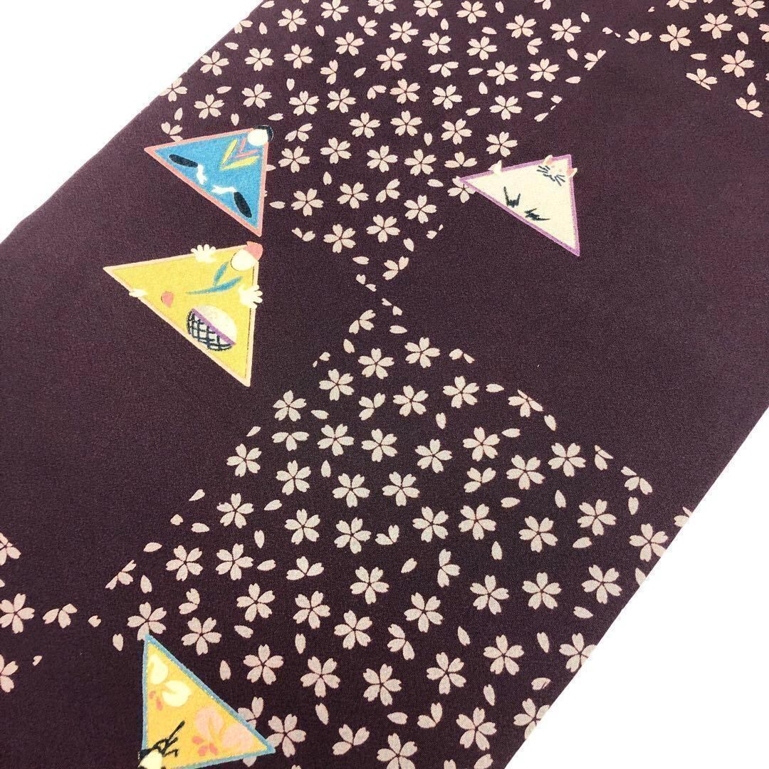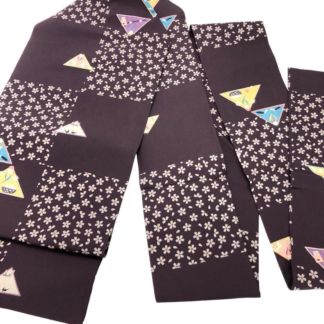 名古屋帯 花模様 花咲か爺さん 縮緬 紫色 O-2981