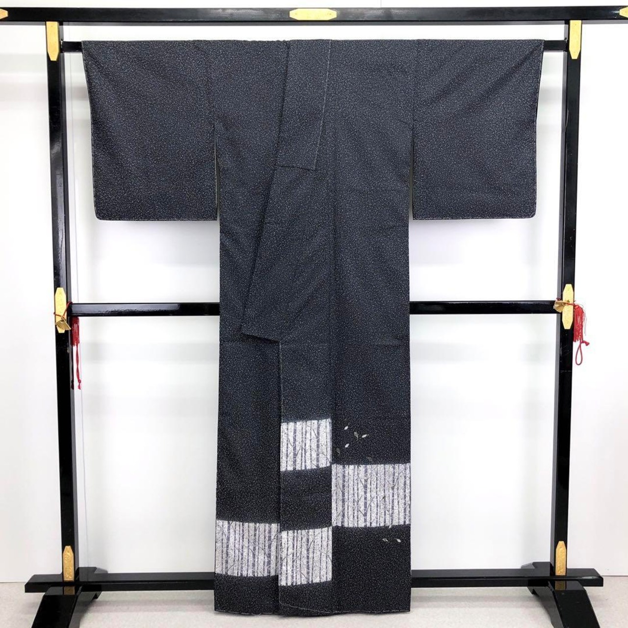 付下げ 染大島 モノトーン 四角に木々模様 叩き染 具墨色 K-3206