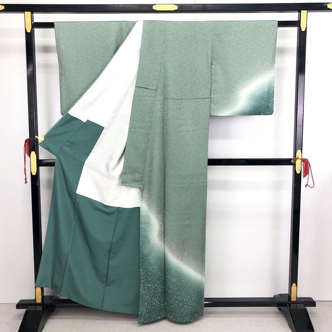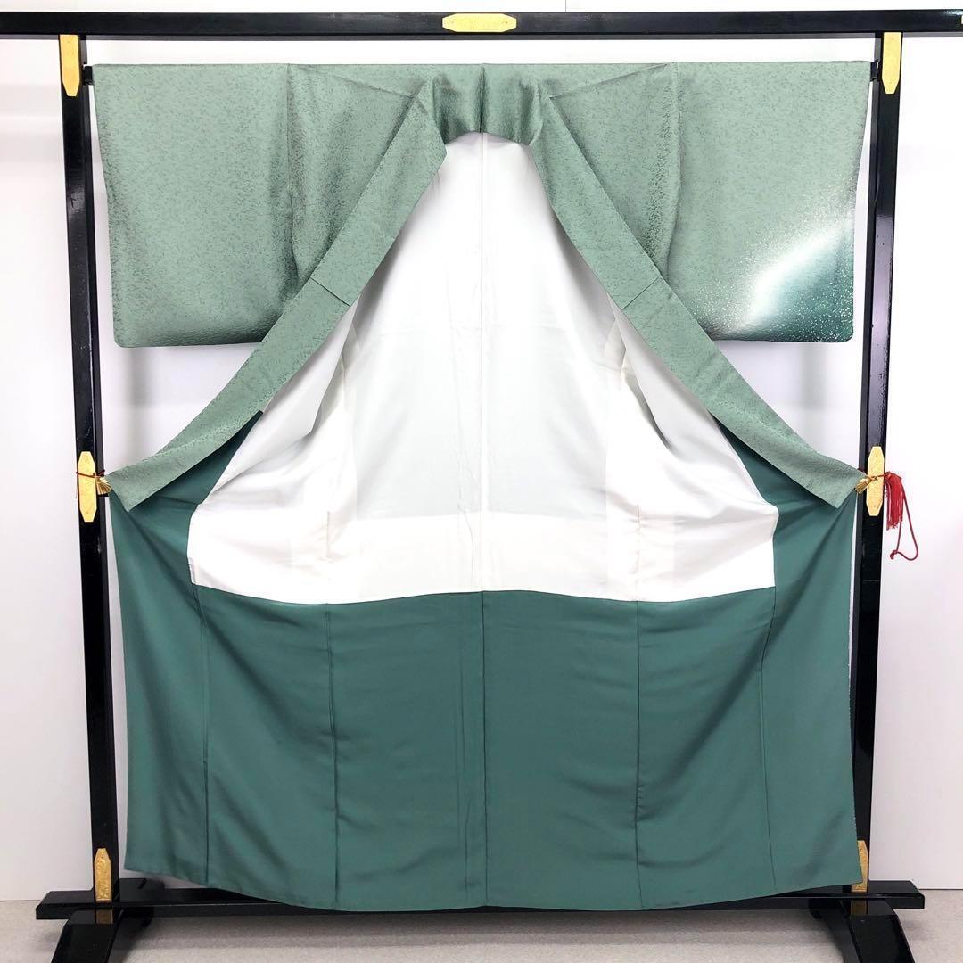 裏葉色の上品な薄緑色の美しいグラデーションに叩き染でデザインされた素敵なお品でございます。
