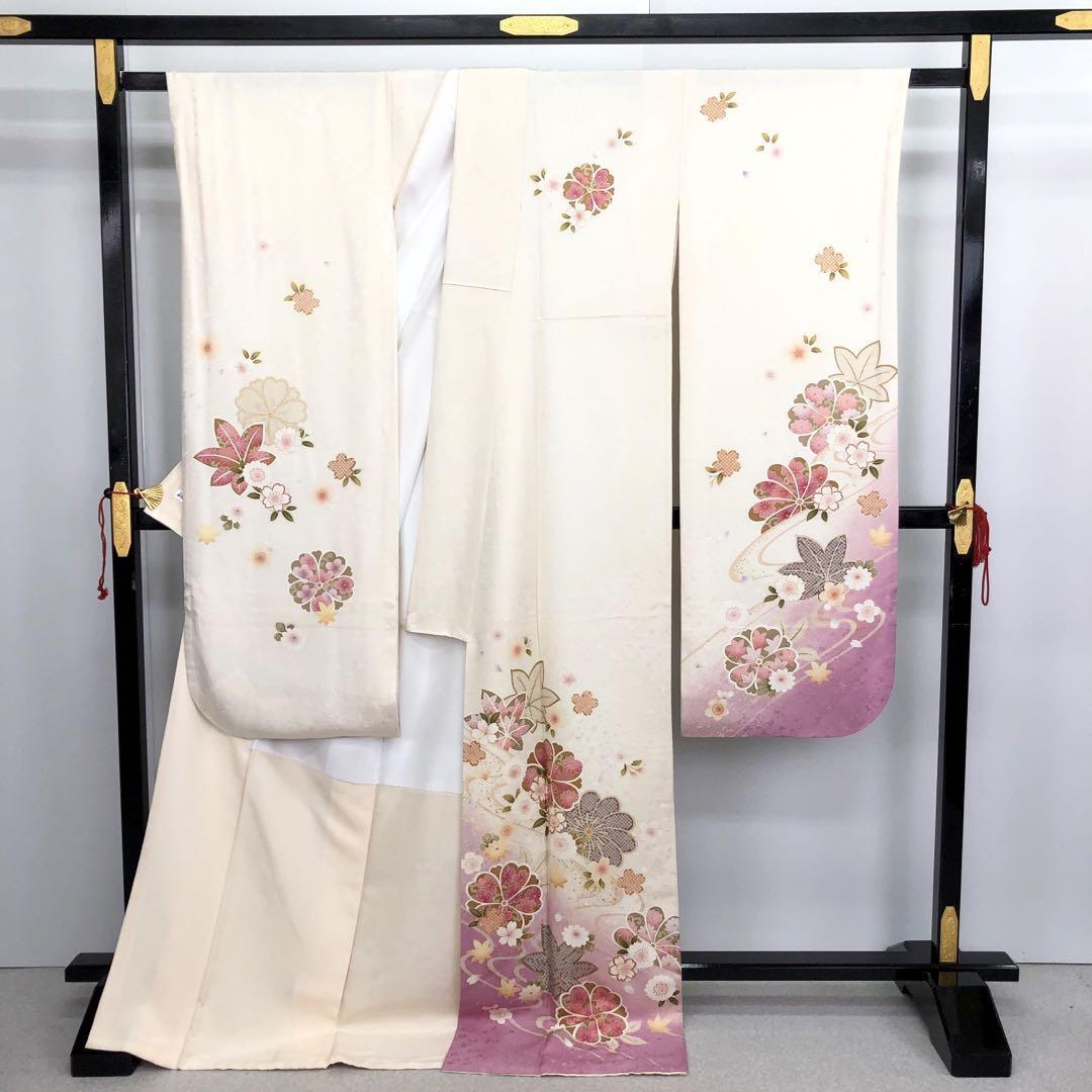 振袖 美しい花模様 桜 金駒刺繍 乳白色 ガード加工 トールサイズ K-3222
