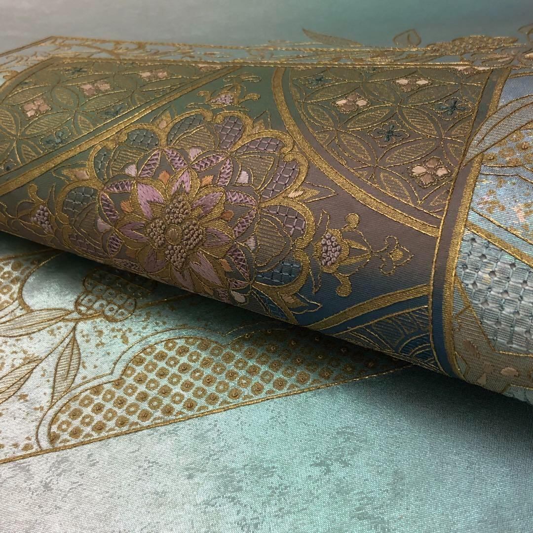 光沢感のある色味の良いグラデーションに汕頭刺繍、相良刺繍の総刺繍でデザインされた美しい華柄紋様が素敵なお品でございます。