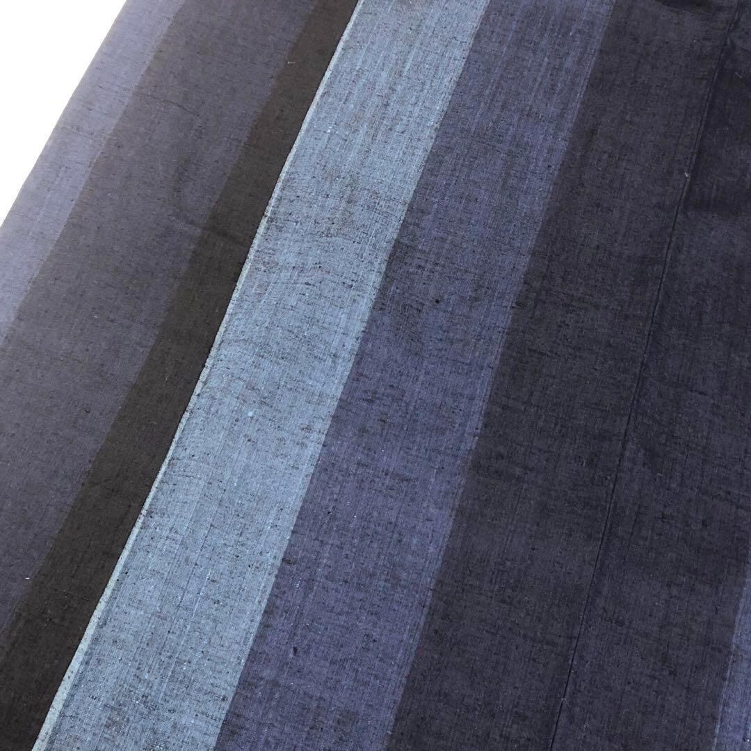 紬着物 縦ストライプ 藍色グラデーション トールサイズ K-3215