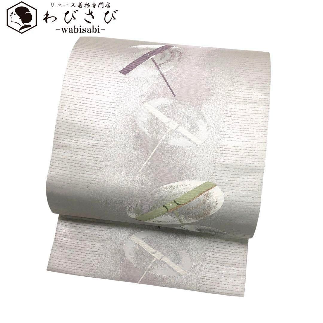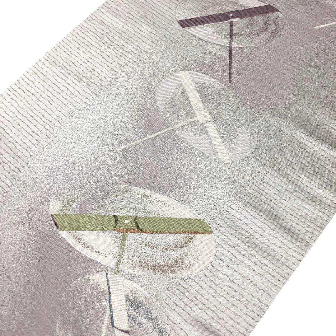 袋帯 京西陣 竹姫 引箔 竹蜻蛉 薄灰色 ガード加工 O-3015