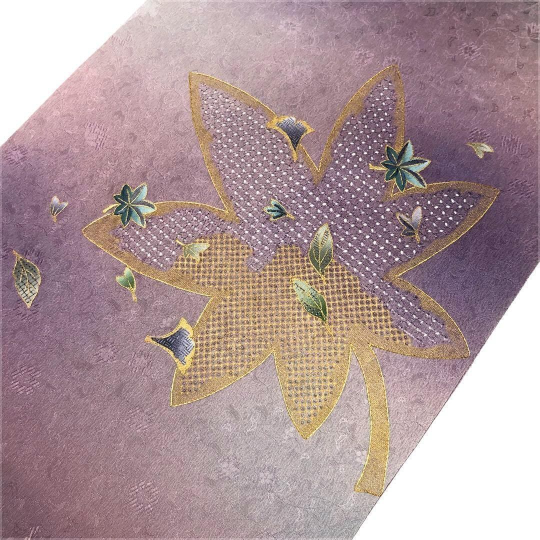 袋帯 紅葉に刺繍 汕頭刺繍 相良刺繍 グラデーション 紫色 O-2965