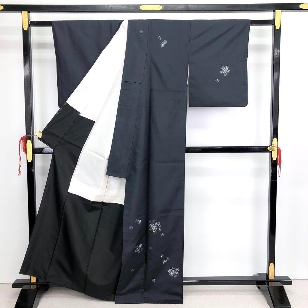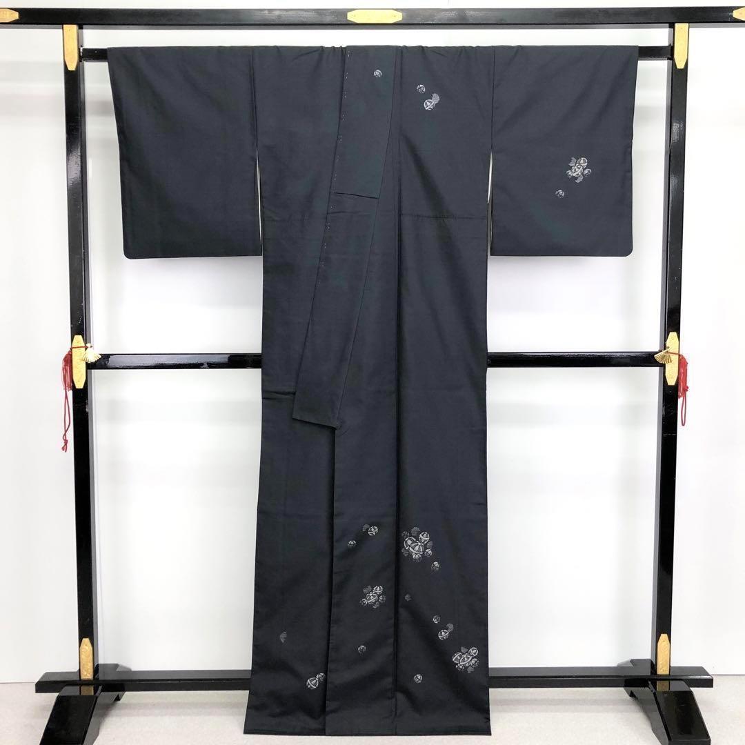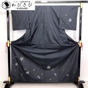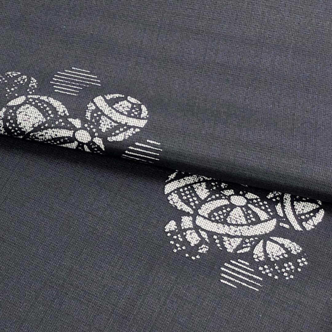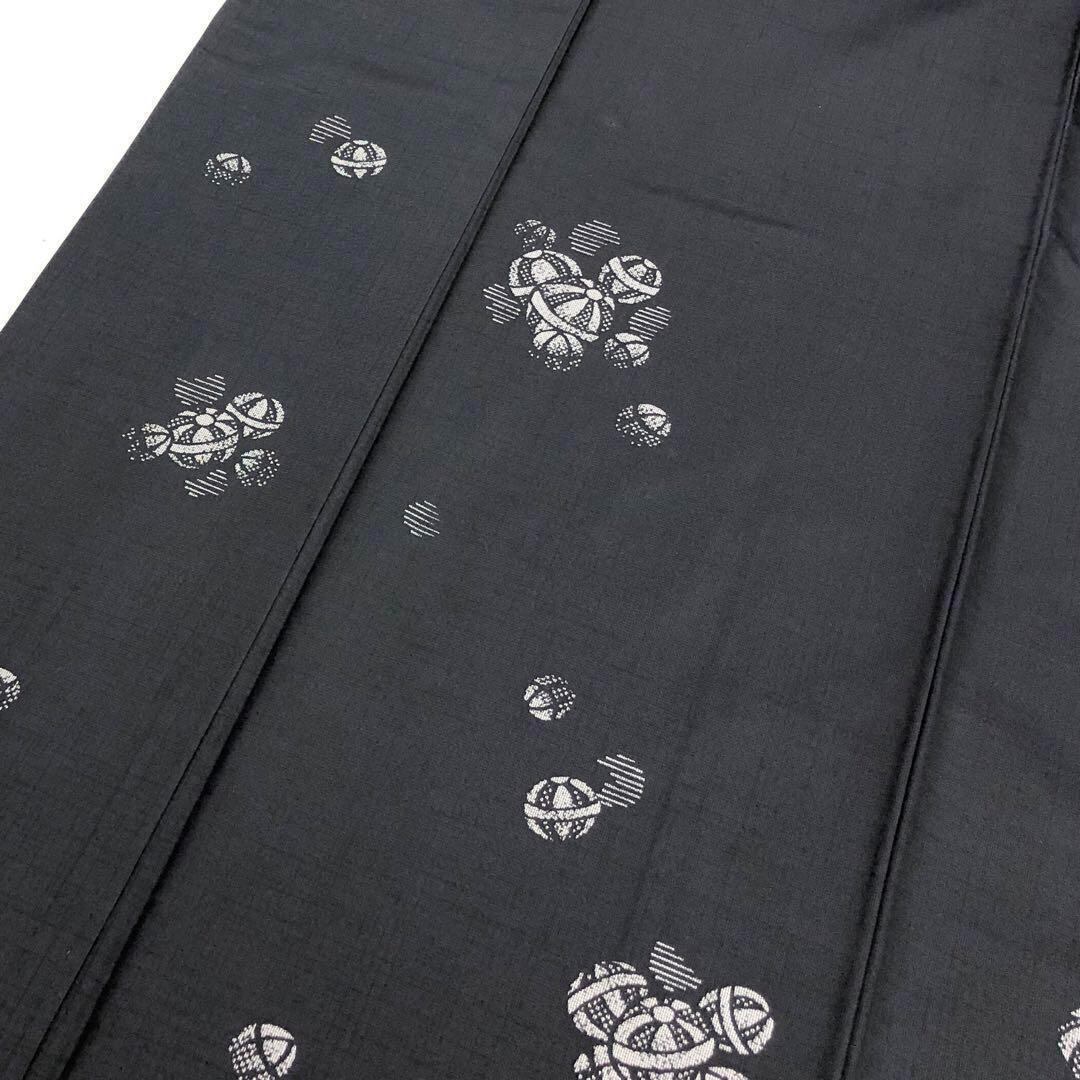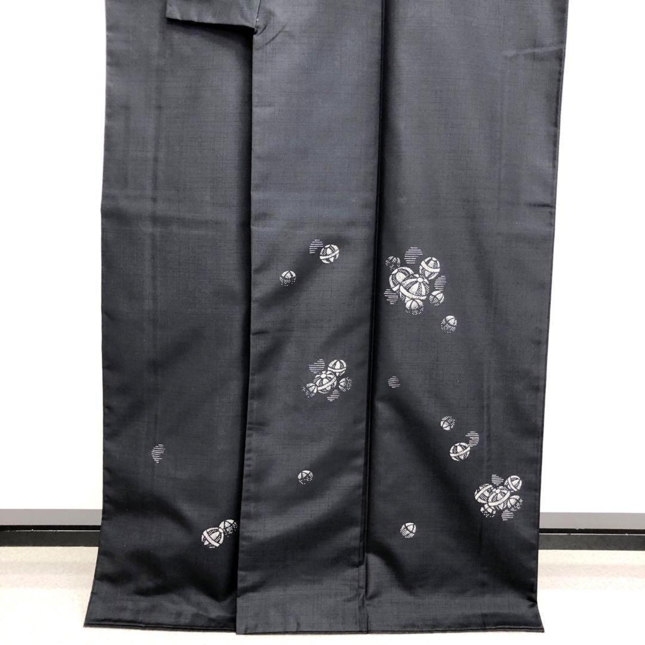 藍墨茶色の美しい染めのお色味に上品な手毬柄がデザインされた素敵なお品でございます。